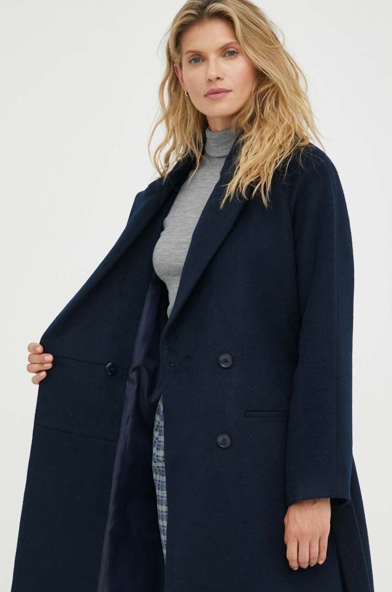 Вовняне пальто 2NDDAY Livia колір синій перехідне двобортне