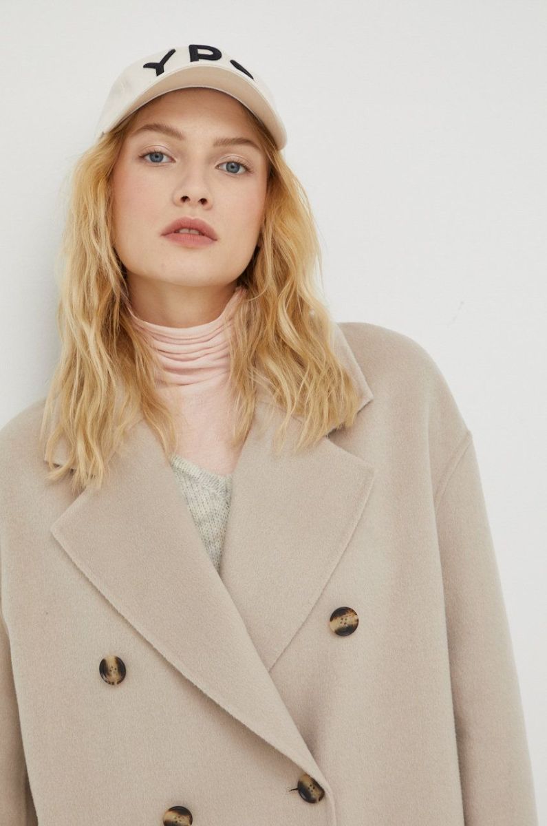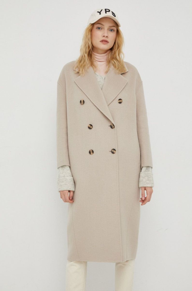 Вовняне пальто American Vintage колір сірий перехідний двобортний