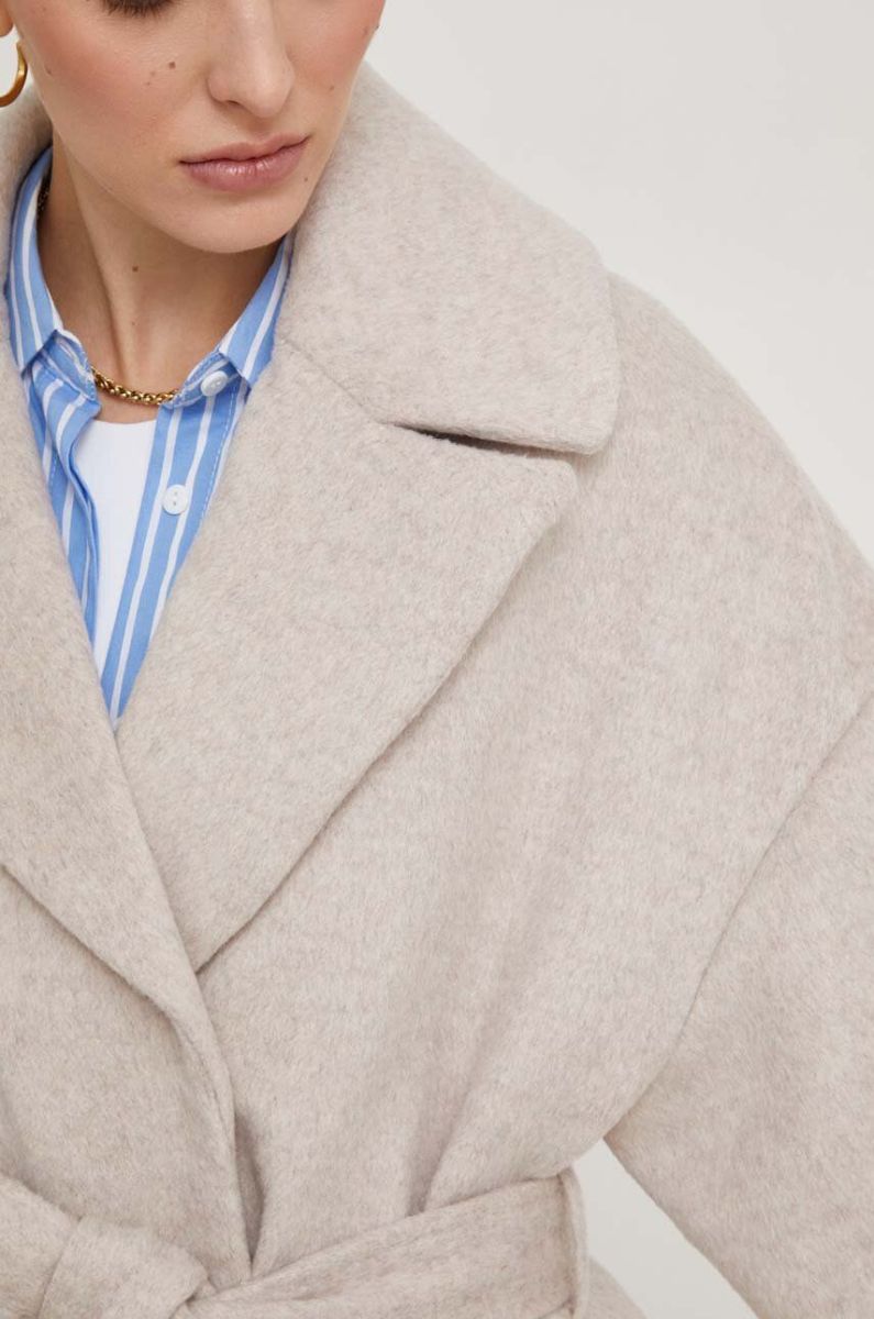 Вовняне пальто Answear Lab колір бежевий перехідний двобортний