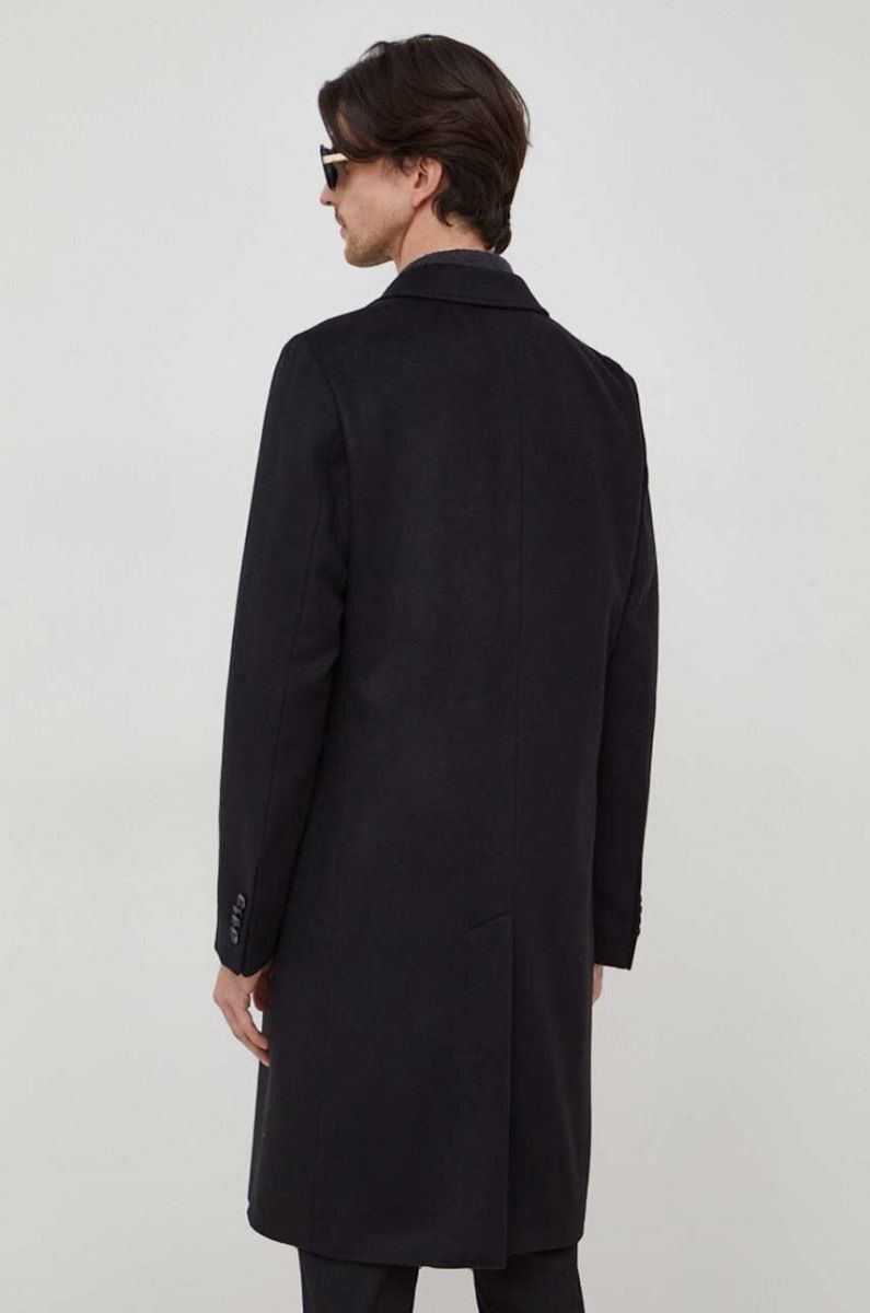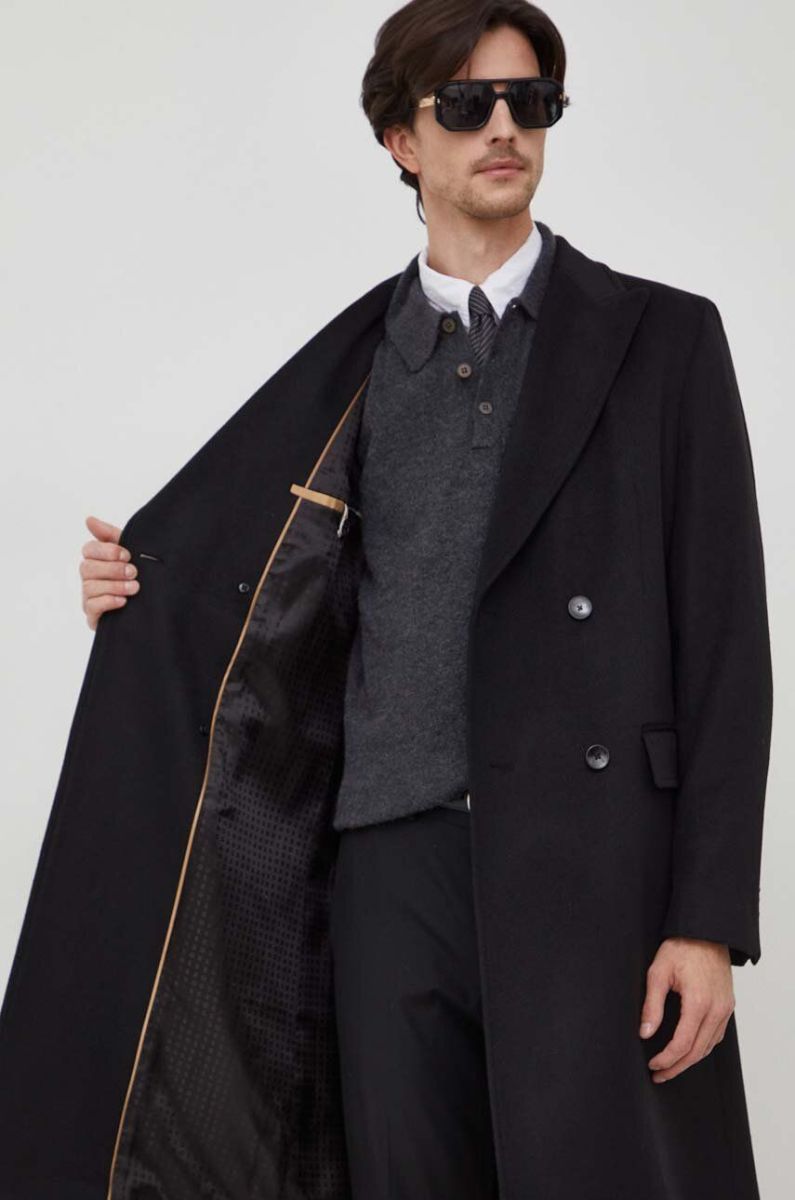 Вовняне пальто BOSS колір чорний перехідний двобортний (3683693)