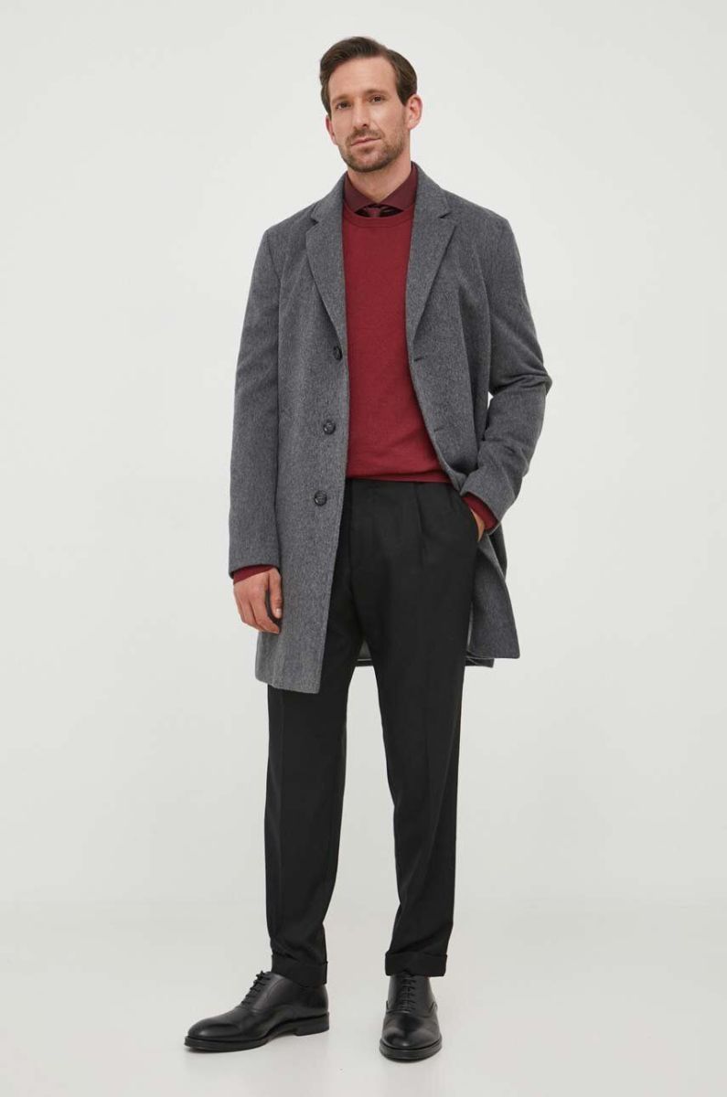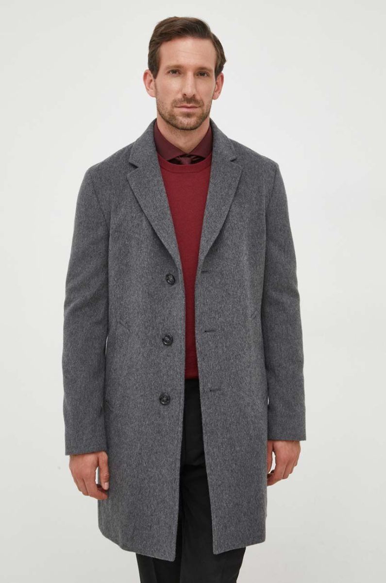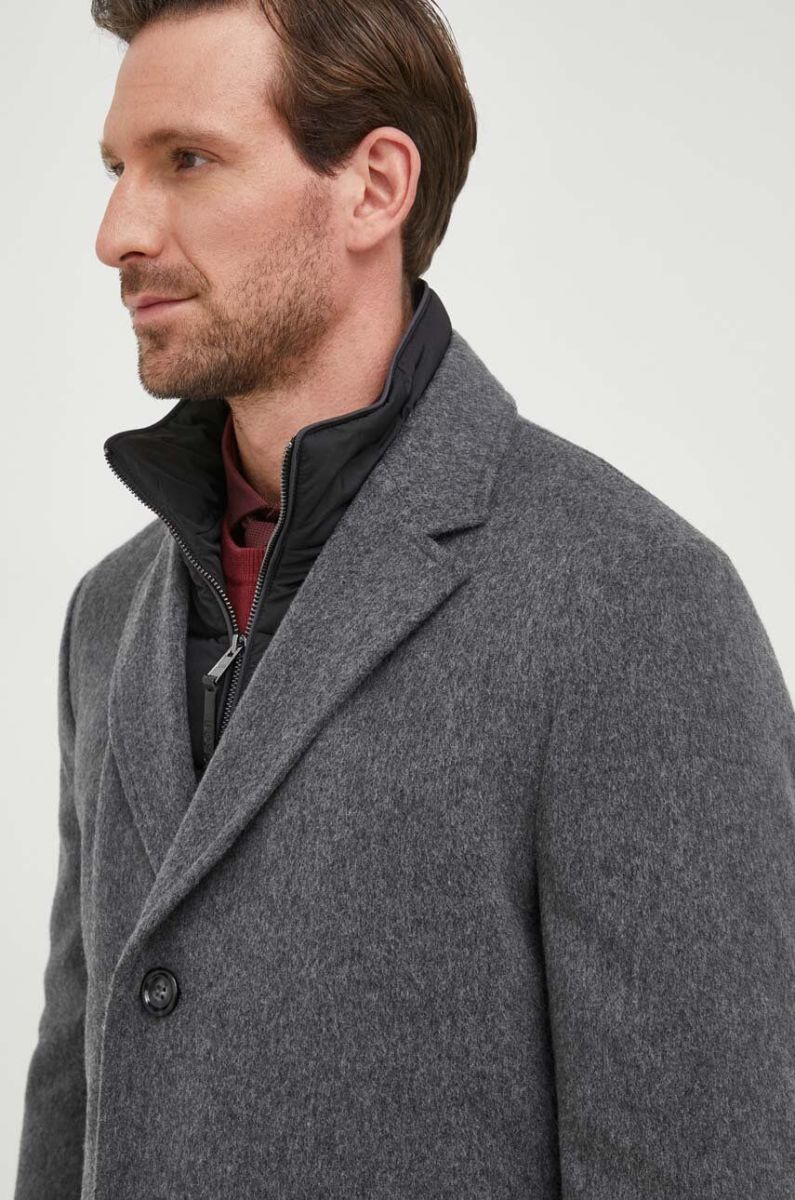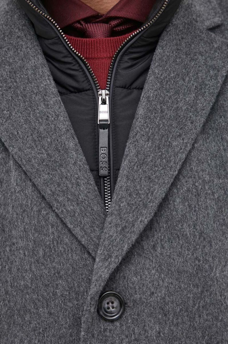 Вовняне пальто BOSS колір сірий перехідний (3489498)