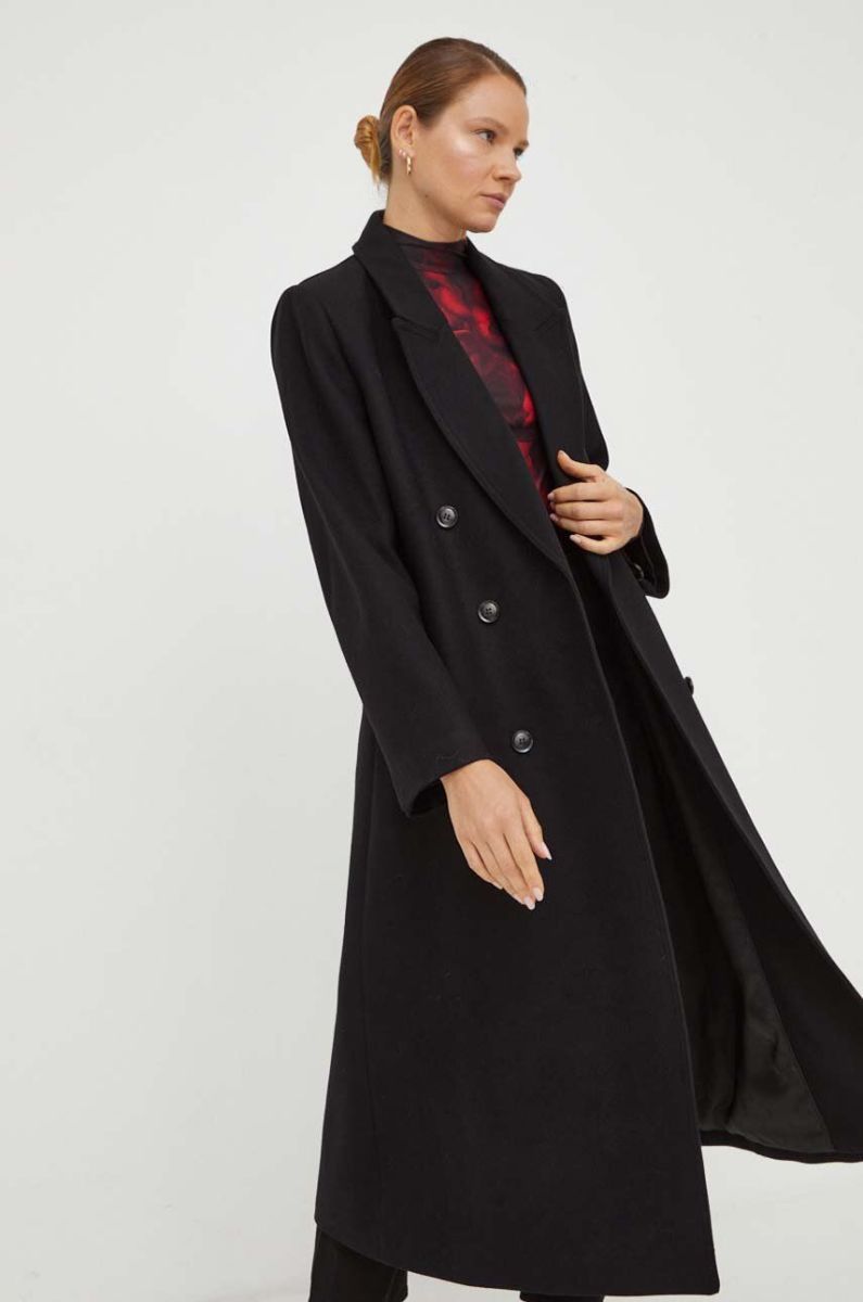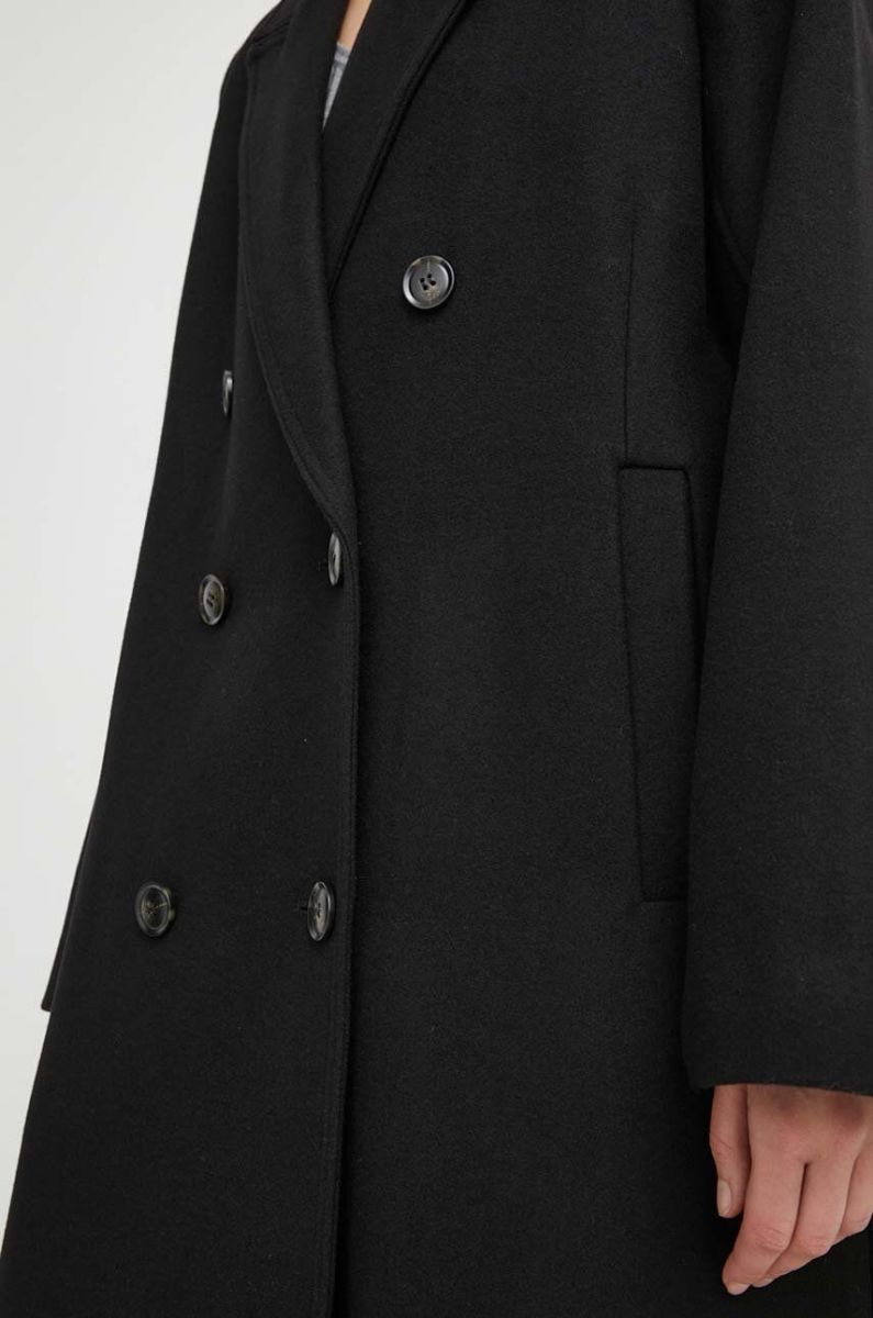 Вовняне пальто Gestuz колір чорний перехідний двобортний (3609613)