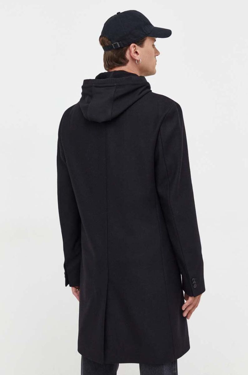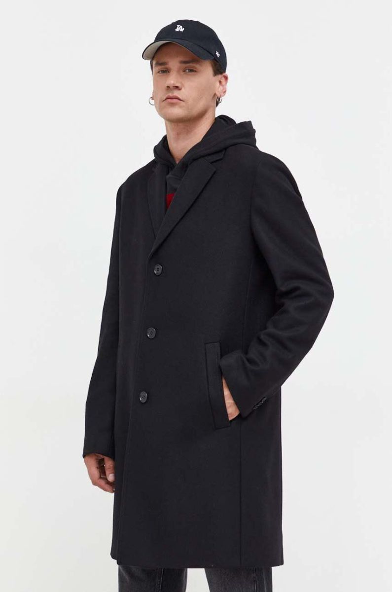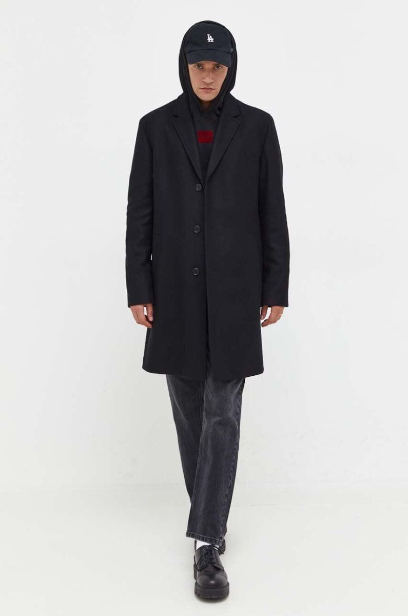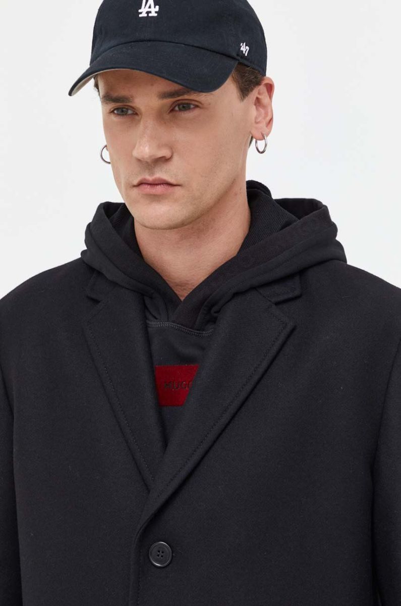 Вовняне пальто HUGO колір чорний перехідний (3481565)