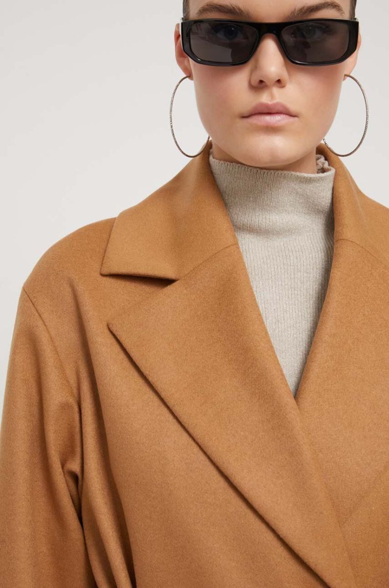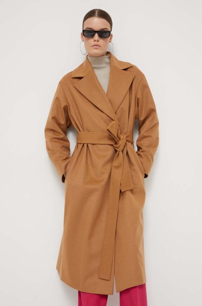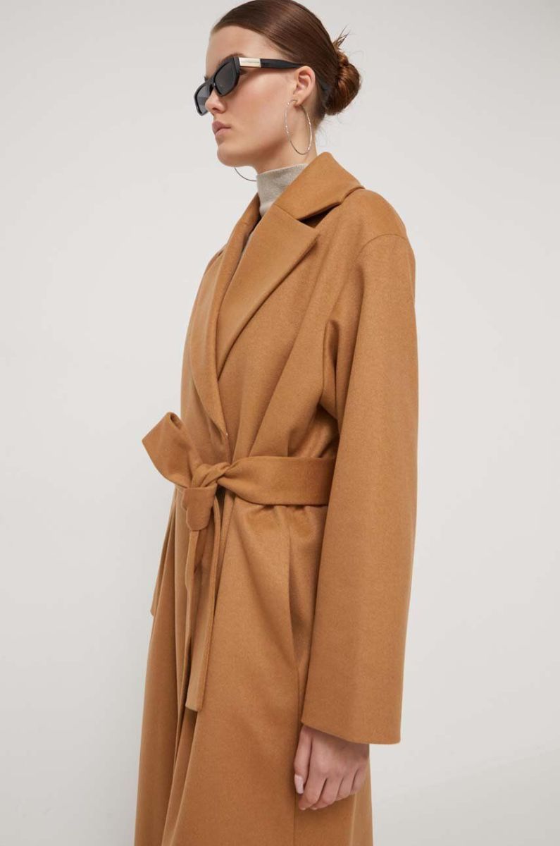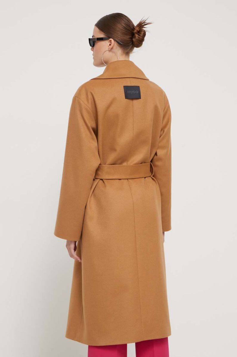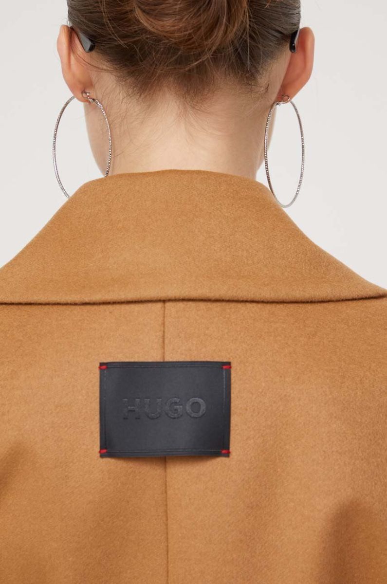 Вовняне пальто HUGO колір коричневий перехідний (3577665)