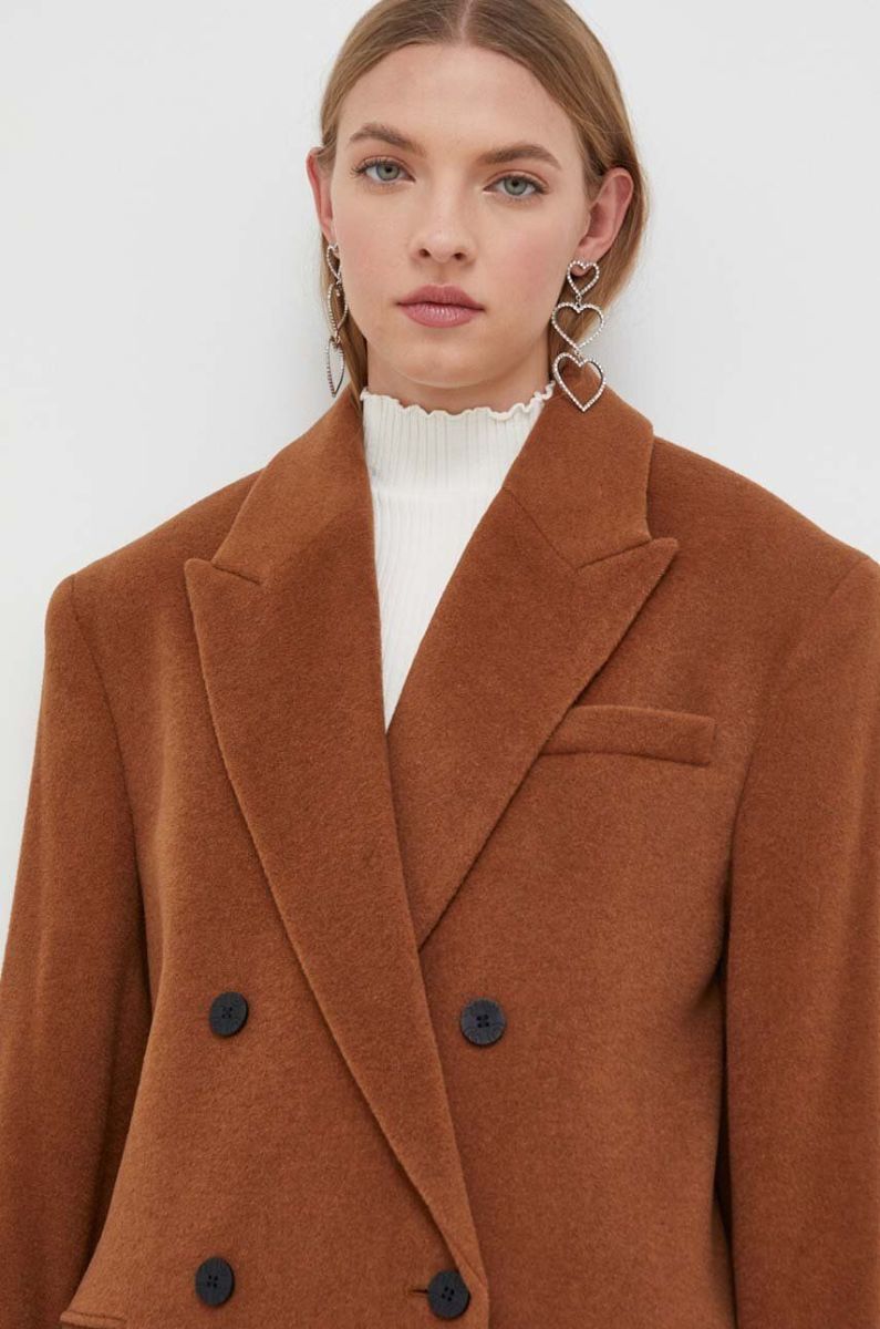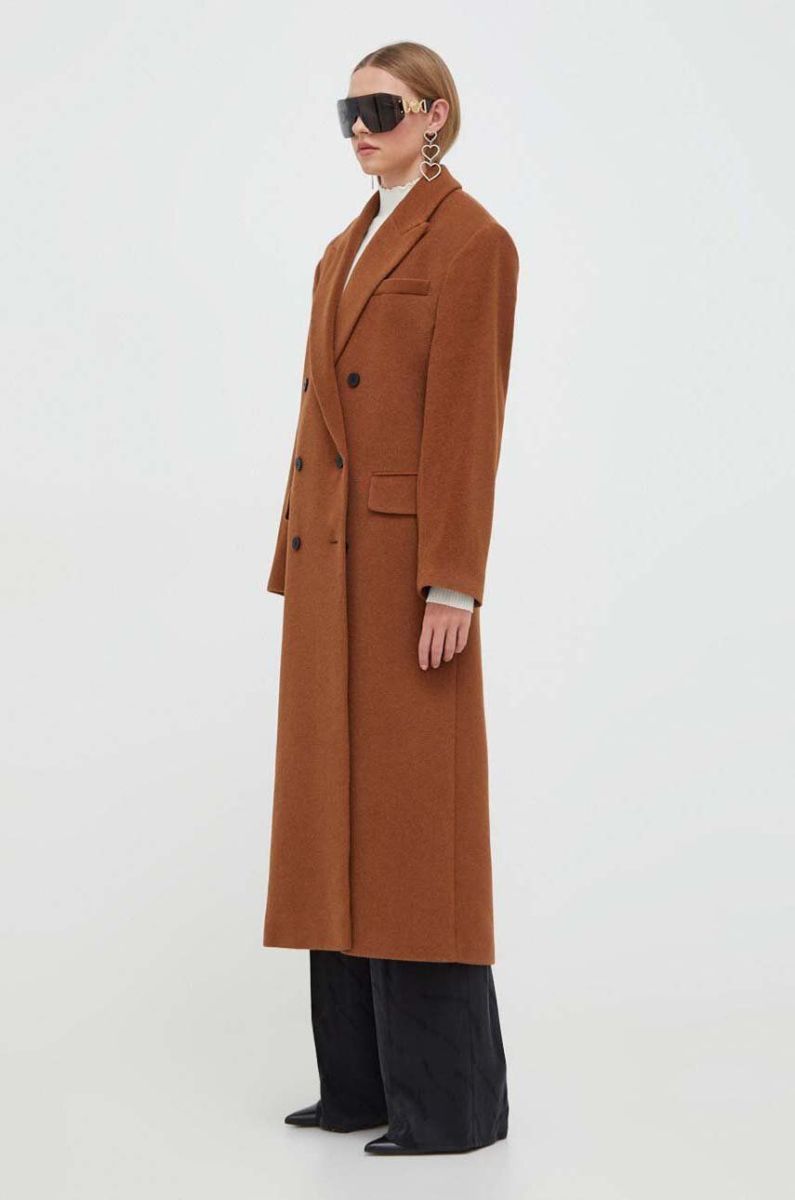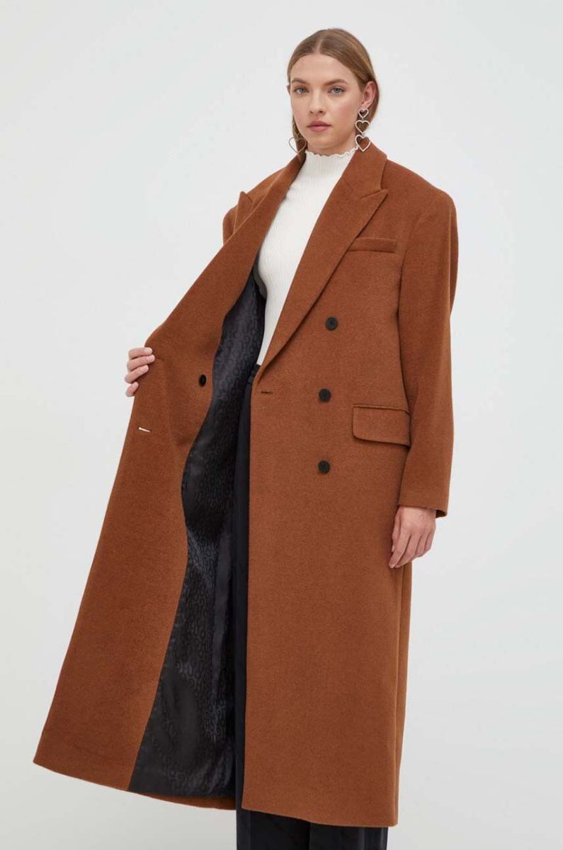 Вовняне пальто HUGO колір коричневий перехідний двобортний