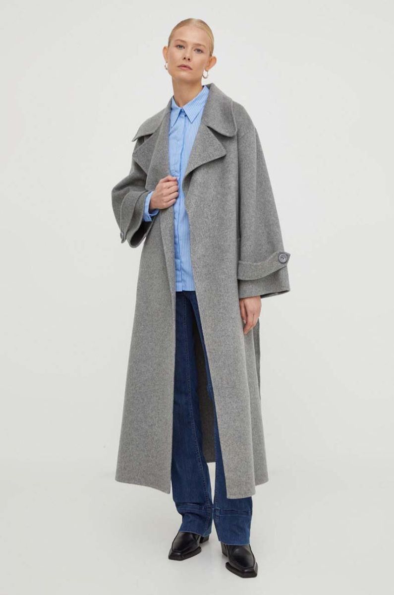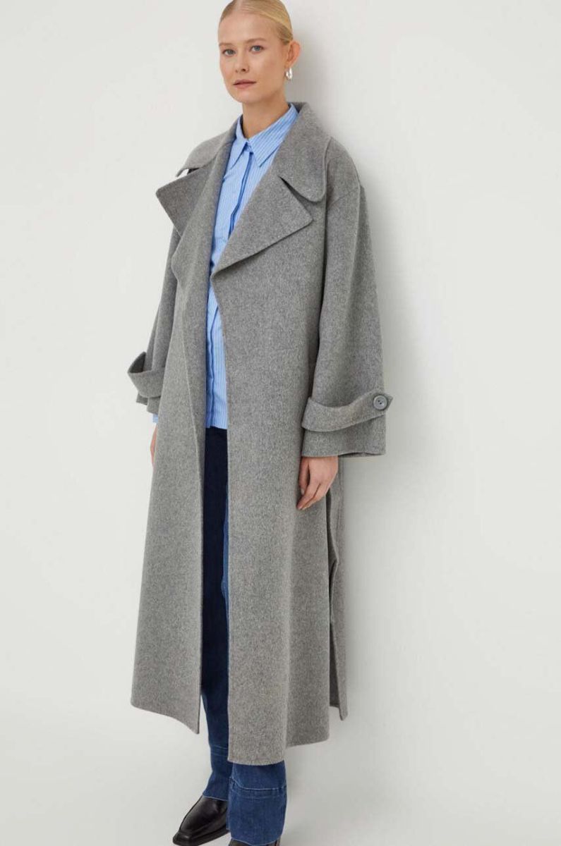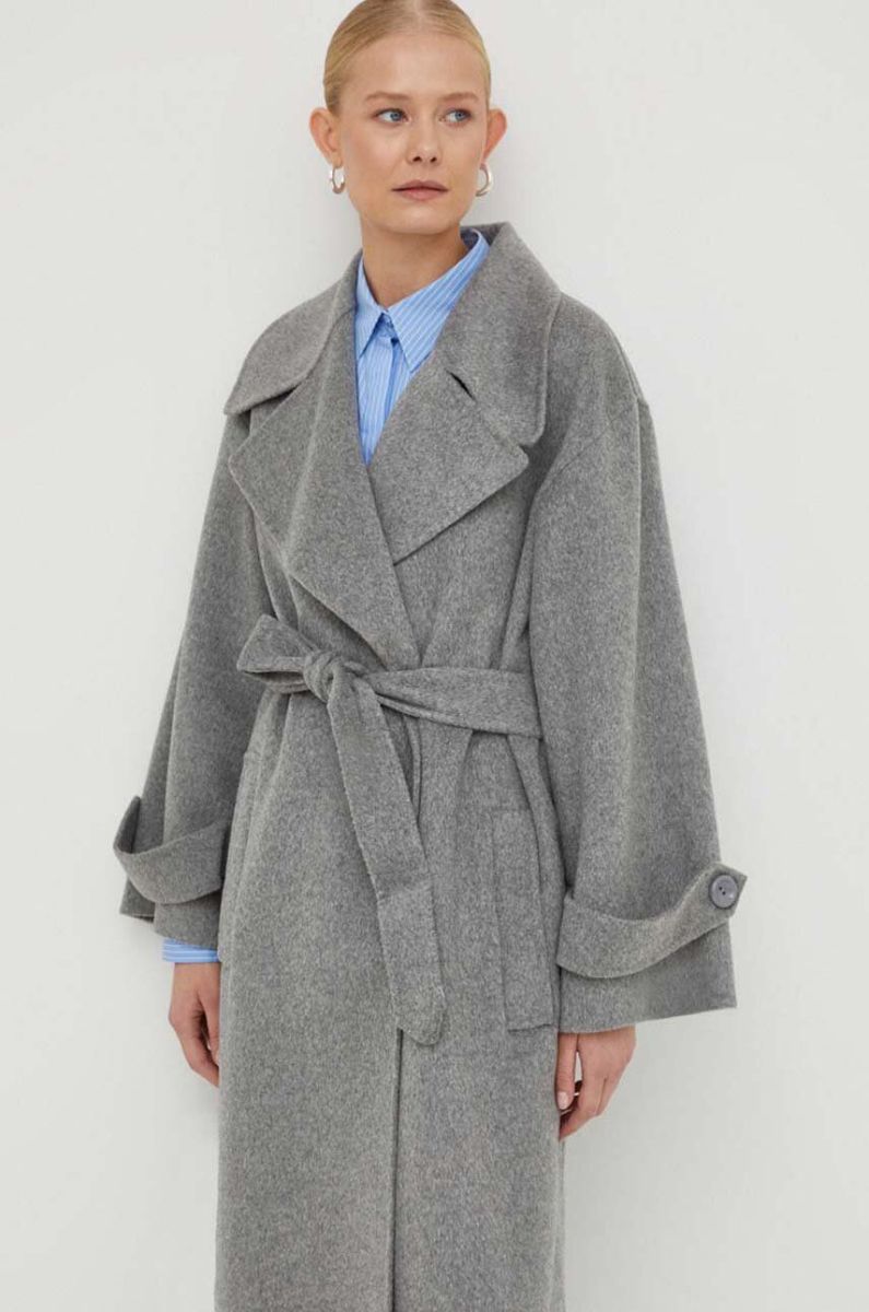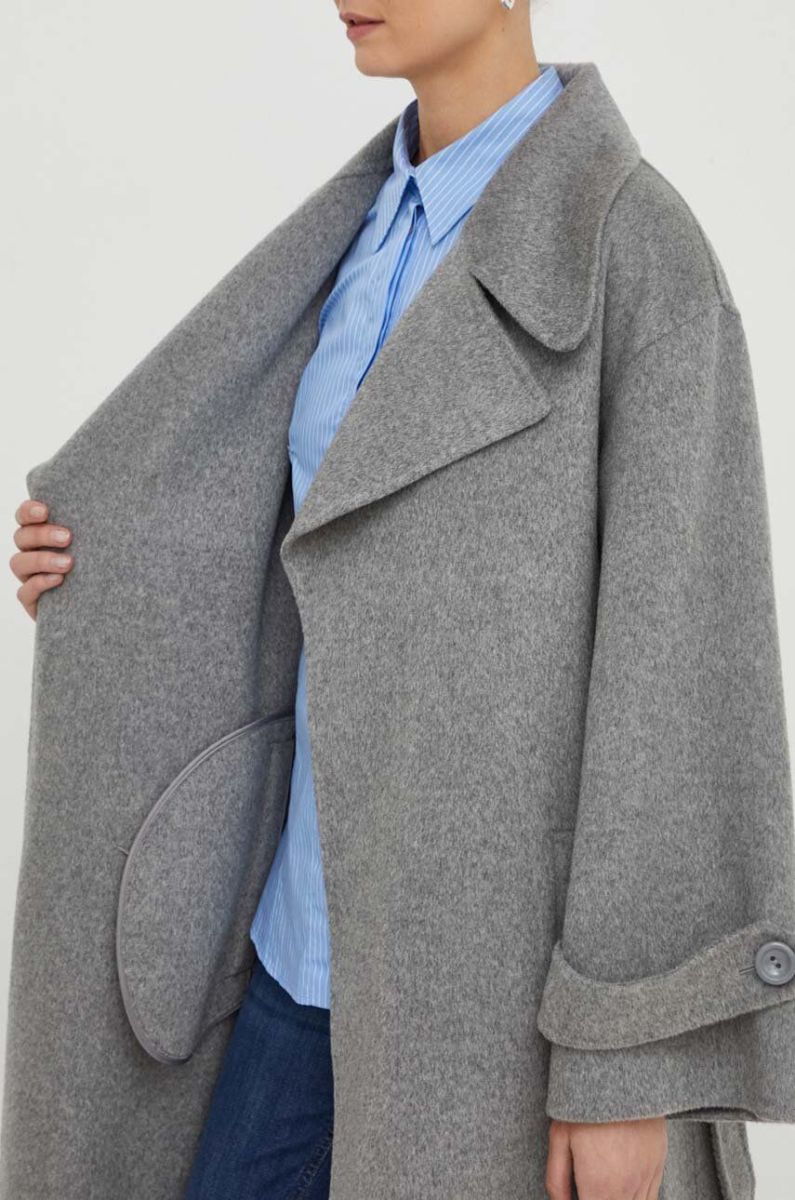 Вовняне пальто Luisa Spagnoli колір сірий перехідний без застібки