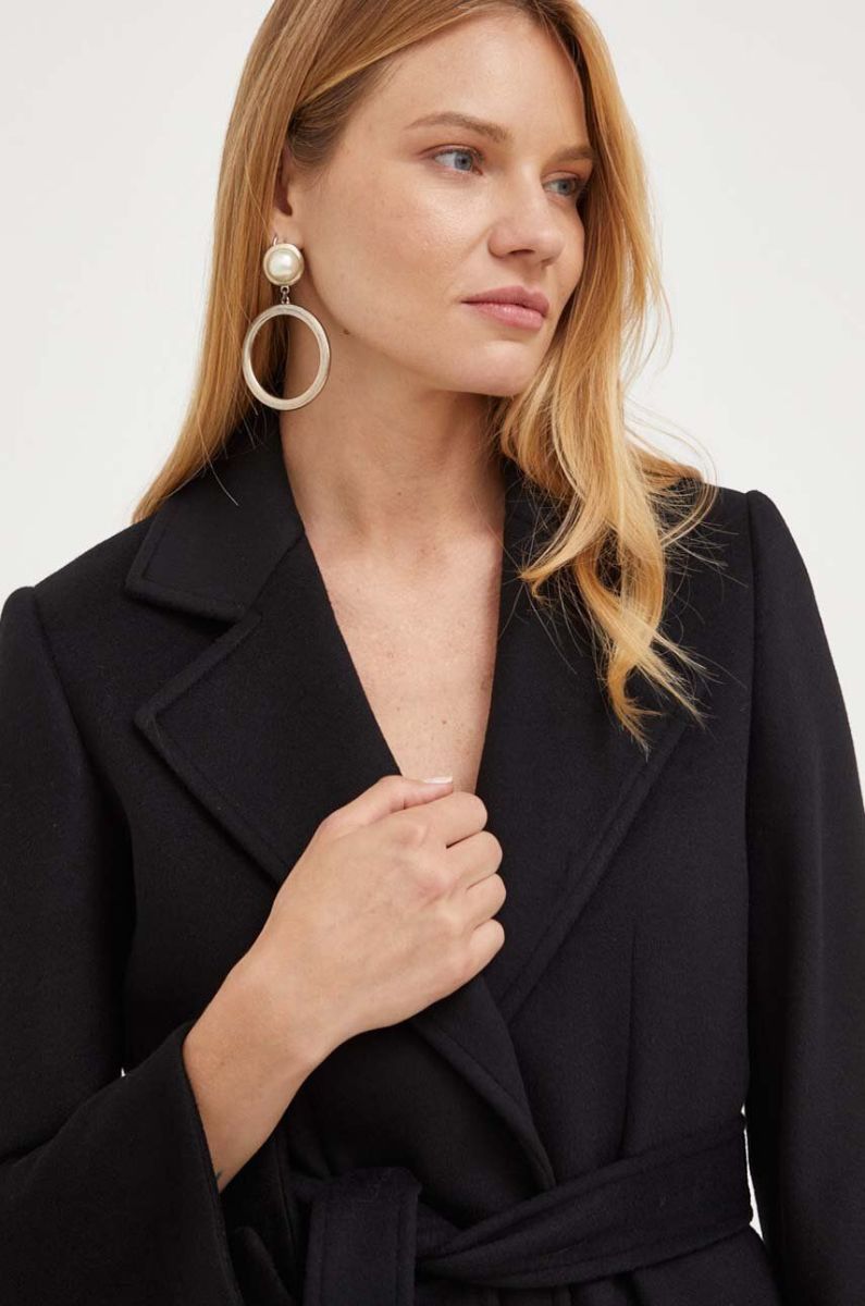 Вовняне пальто MAX&Co. колір чорний перехідний без застібки