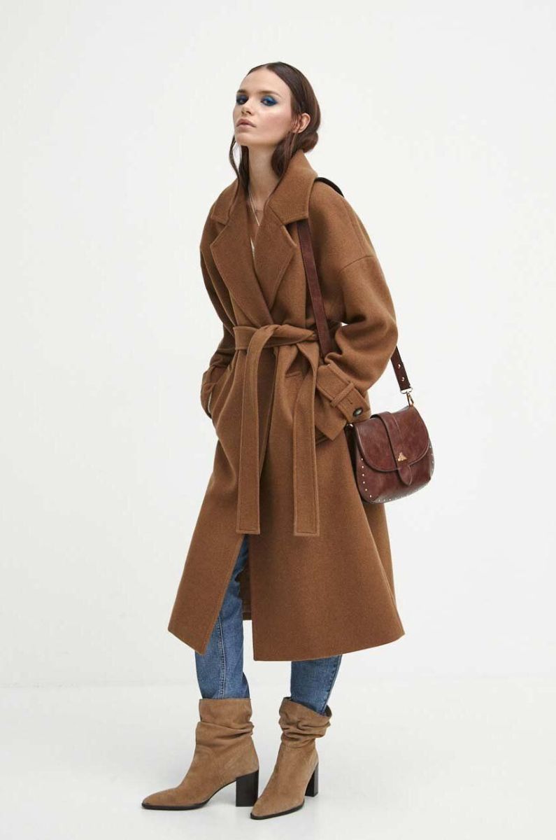 Вовняне пальто Medicine колір бежевий перехідний oversize