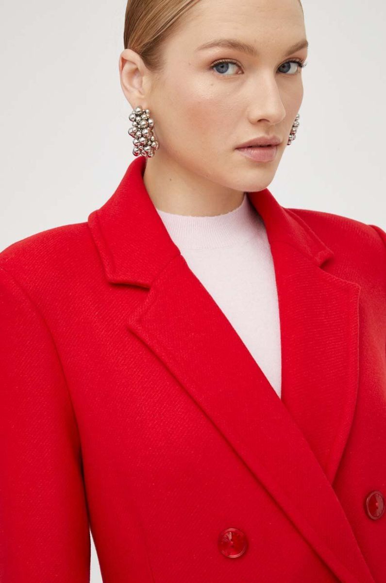 Вовняне пальто Patrizia Pepe колір червоний перехідний двобортний (3533345)