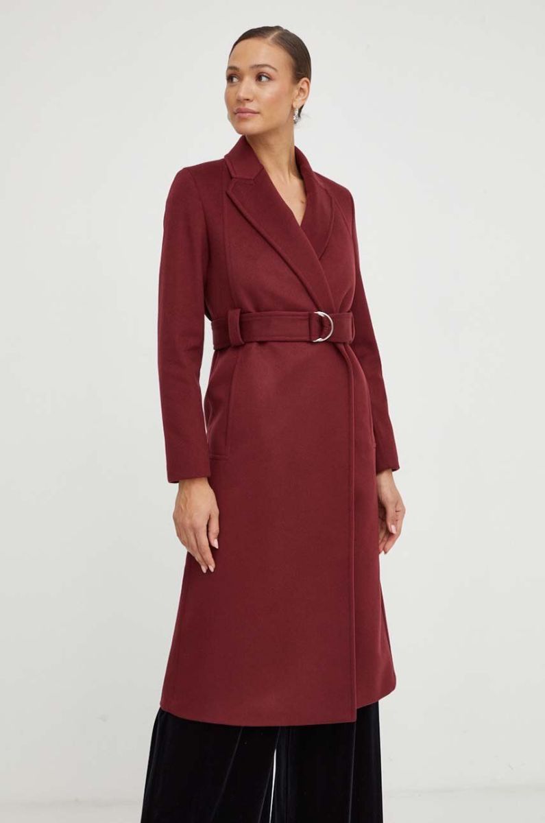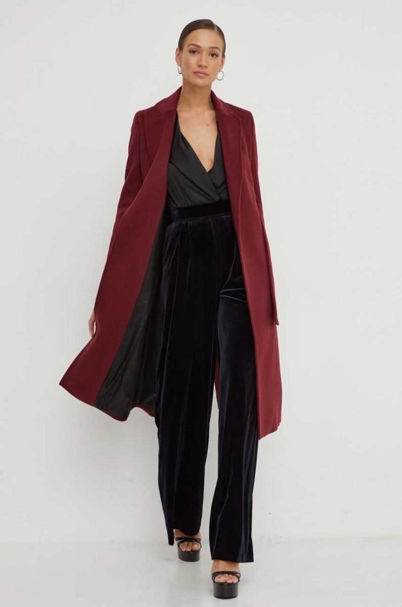 Вовняне пальто Patrizia Pepe колір фіолетовий перехідний без застібки