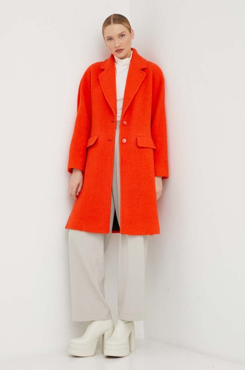 Вовняне пальто Patrizia Pepe колір помаранчевий перехідний