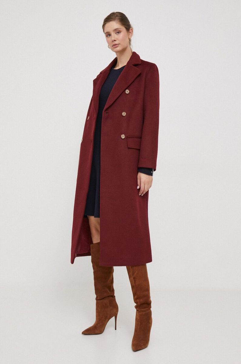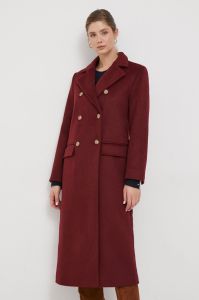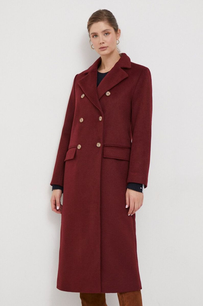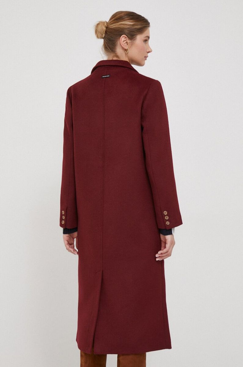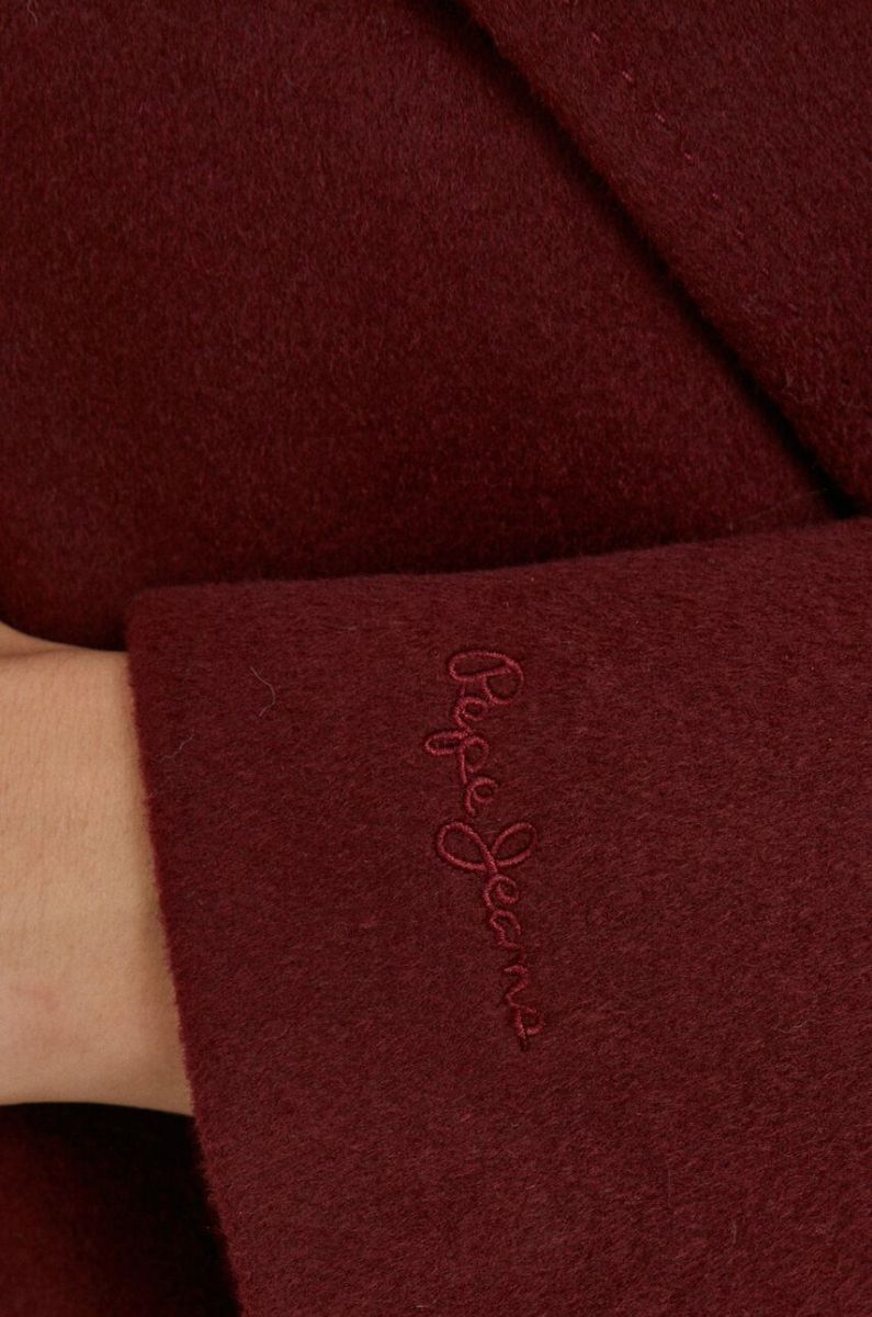 Вовняне пальто Pepe Jeans колір бордовий перехідний двобортний