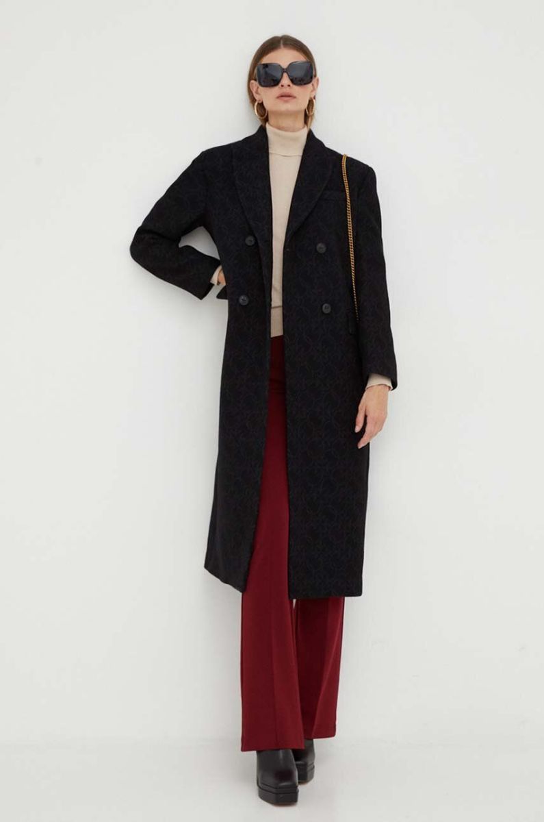 Вовняне пальто Pinko колір чорний перехідний двобортний (3441927)