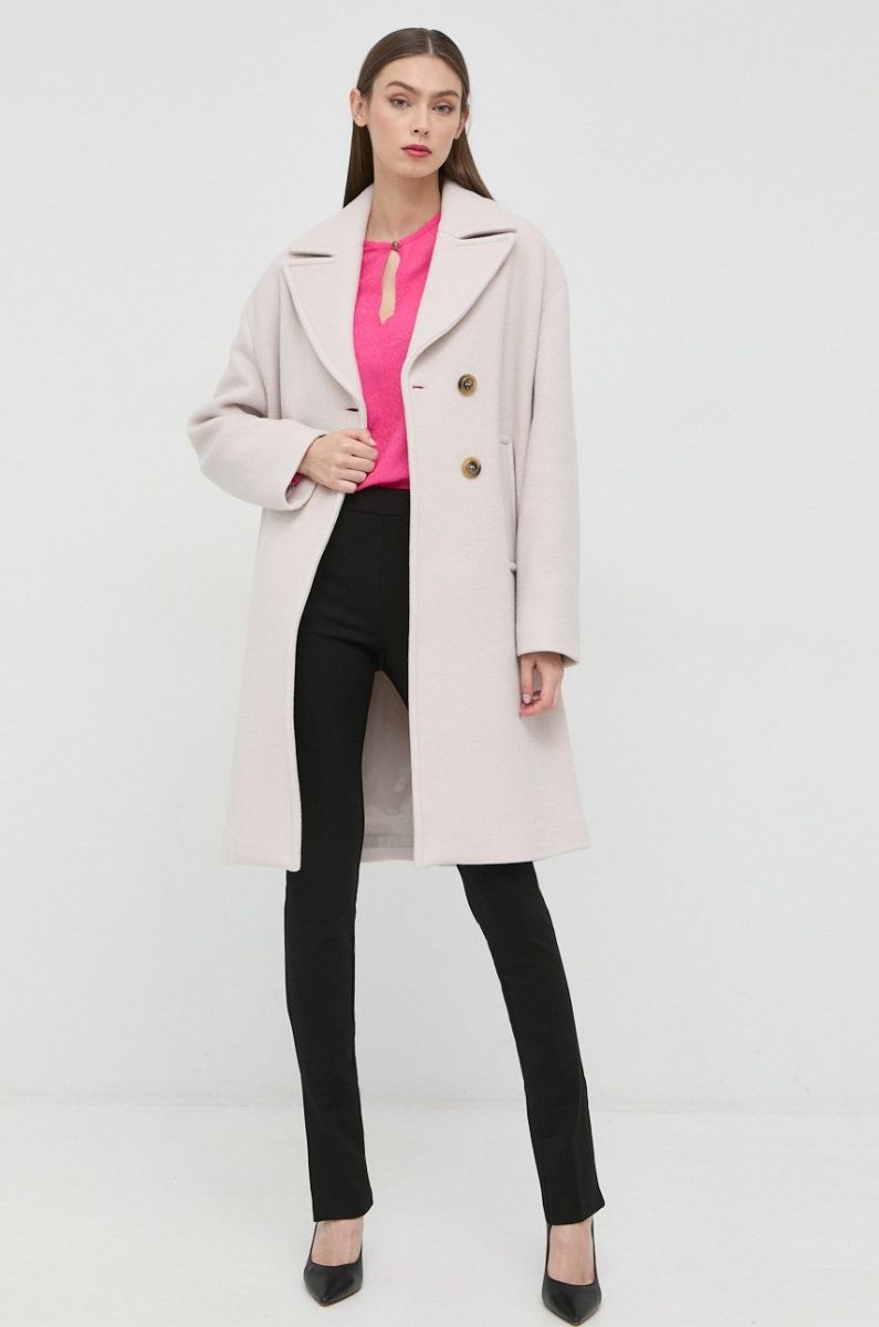 Вовняне пальто Pinko жіночий колір сірий перехідний двобортний