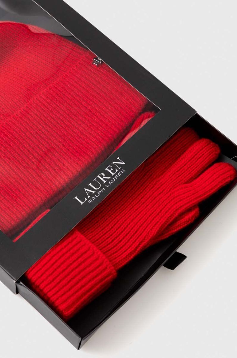 Вовняні шапка та рукавички Lauren Ralph Lauren колір червоний Один розмір