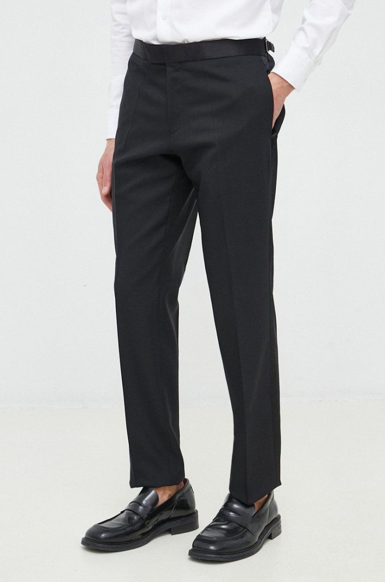 Вовняні штани BOSS чоловічі колір чорний пряме