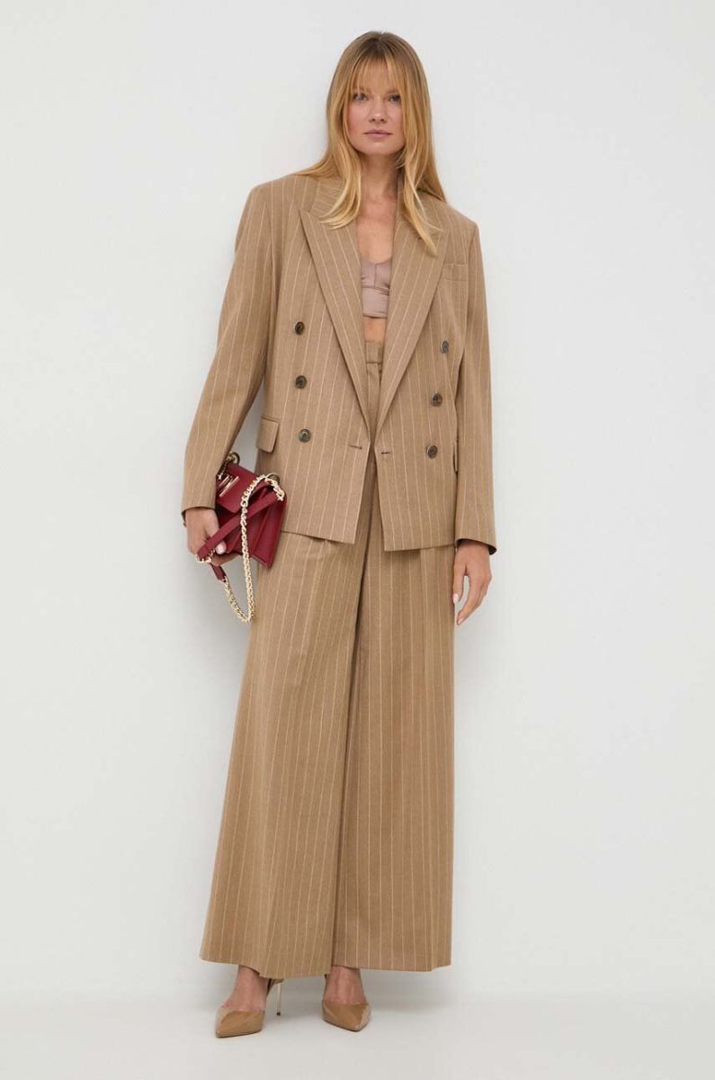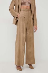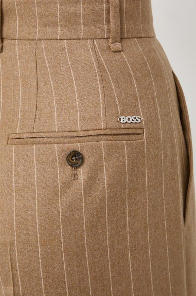 Вовняні штани BOSS колір бежевий кльош висока посадка (3614729)