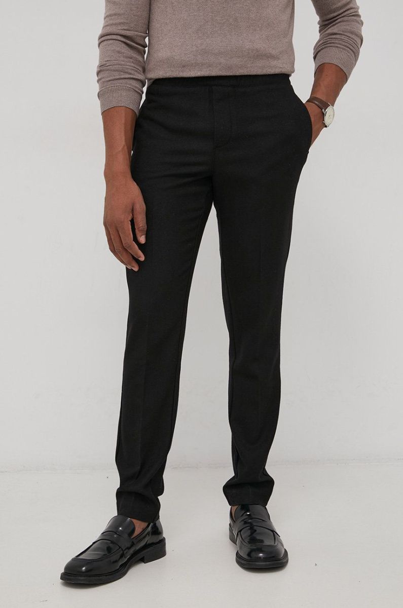 Вовняні штани Bruuns Bazaar чоловічі колір чорний облягаючі