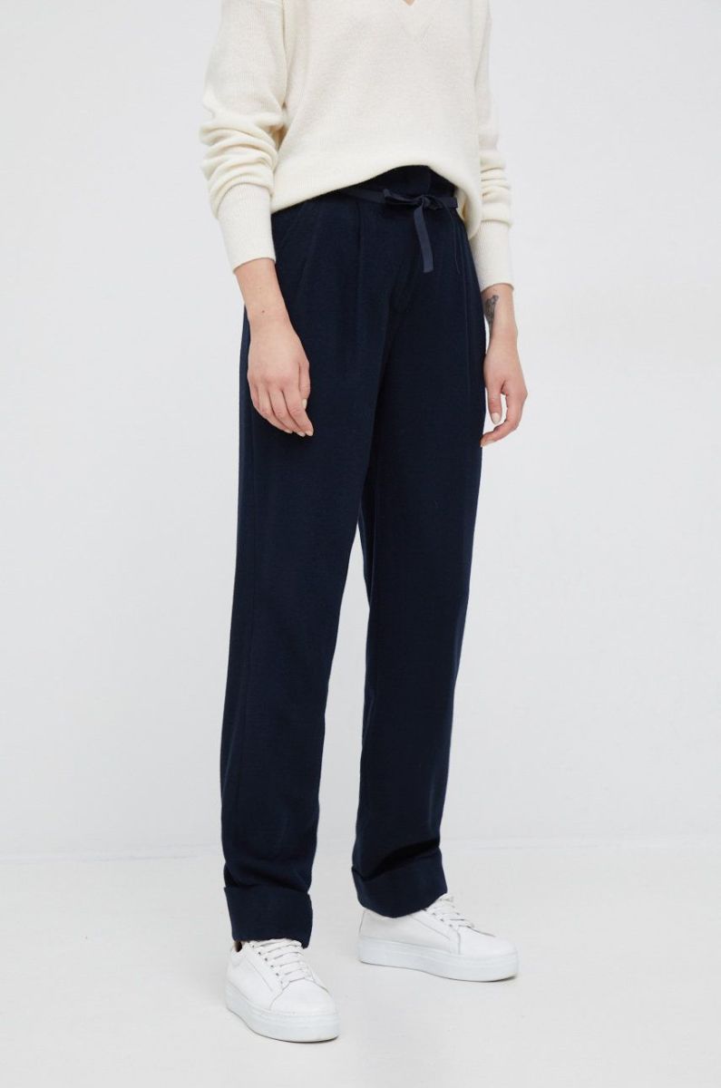 Вовняні штани Emporio Armani жіночі колір синій пряме висока посадка