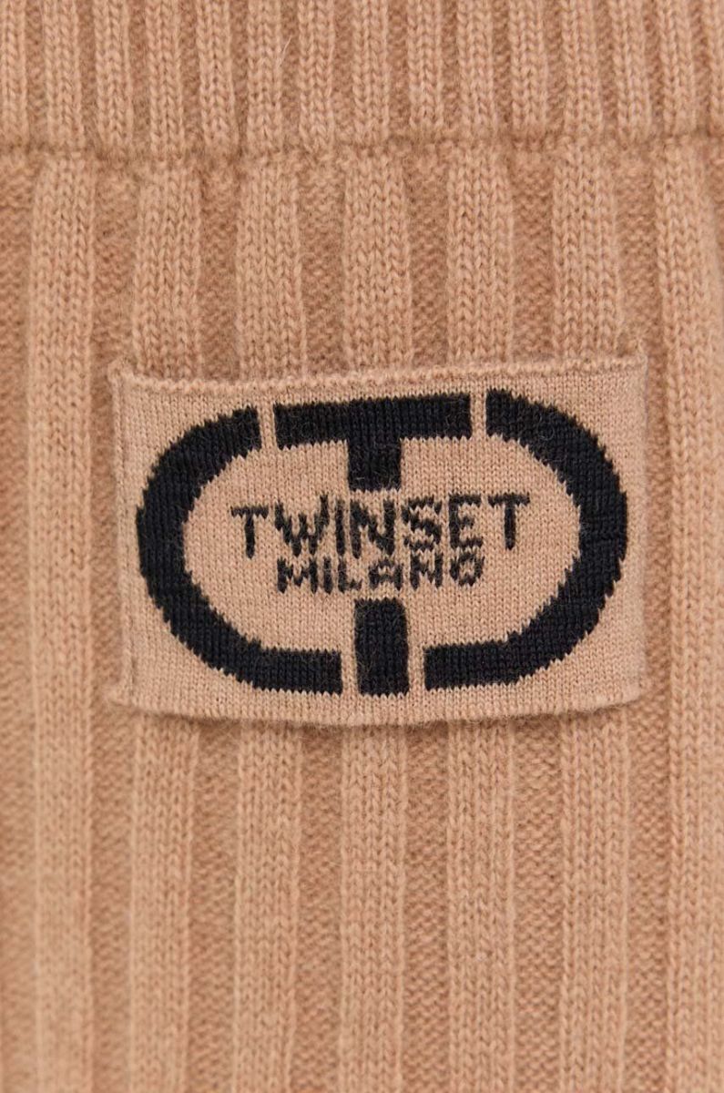 Вовняні штани Twinset колір бежевий кльош висока посадка