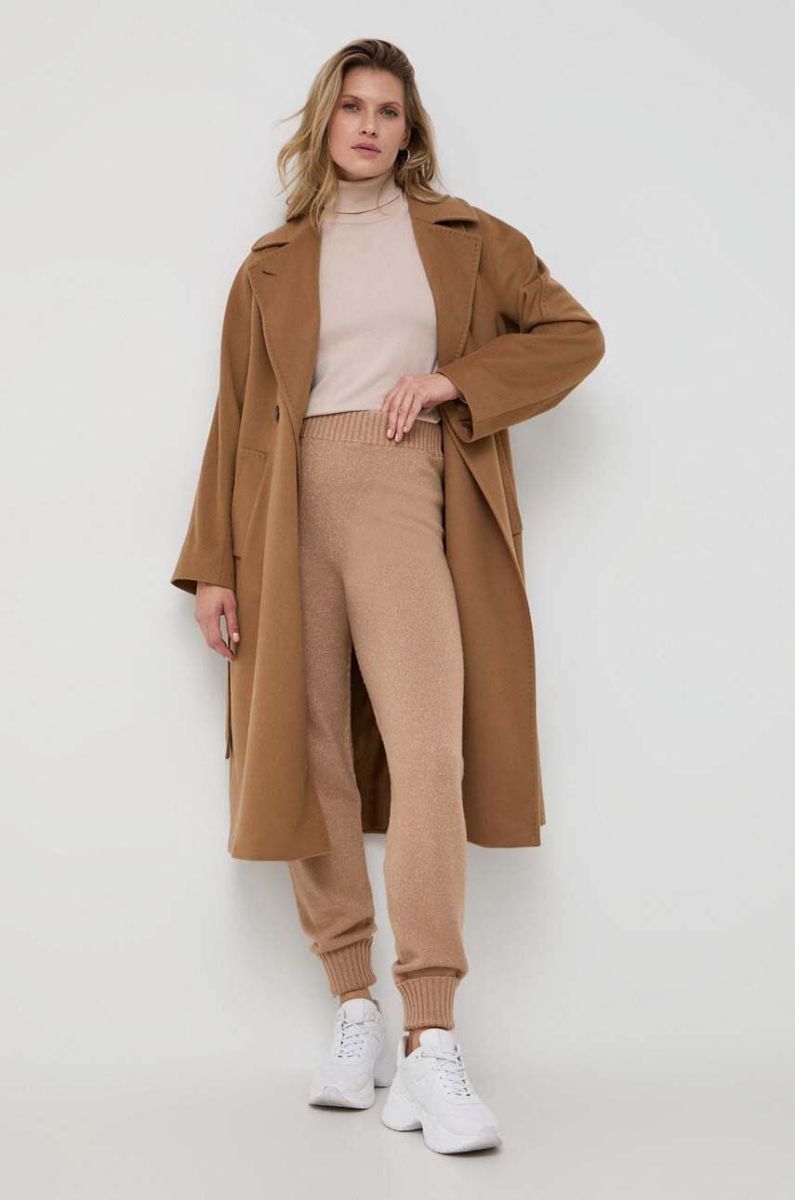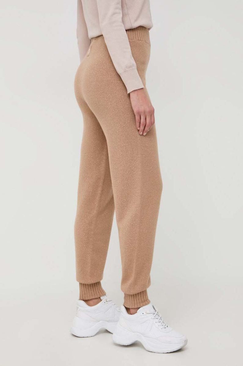 Вовняні штани Twinset колір бежевий однотонні (3645434)