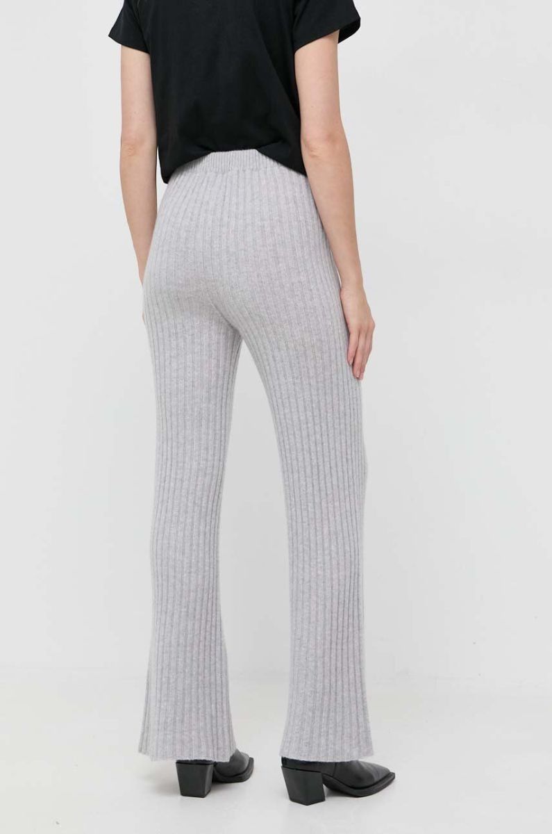 Вовняні штани Twinset колір сірий кльош висока посадка