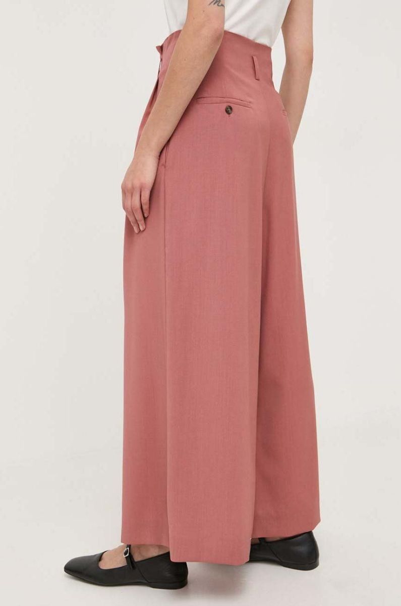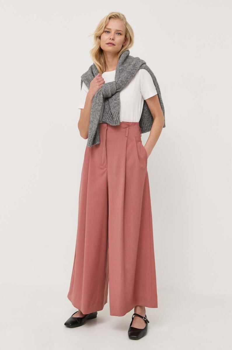 Вовняні штани Weekend Max Mara колір рожевий пряме висока посадка