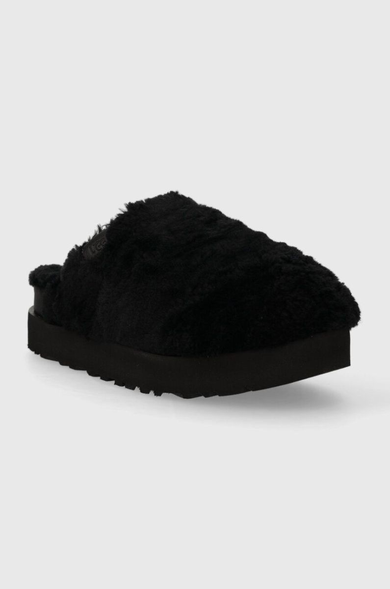Вовняні тапочки UGG Fuzz Sugar Slide колір чорний 1135132