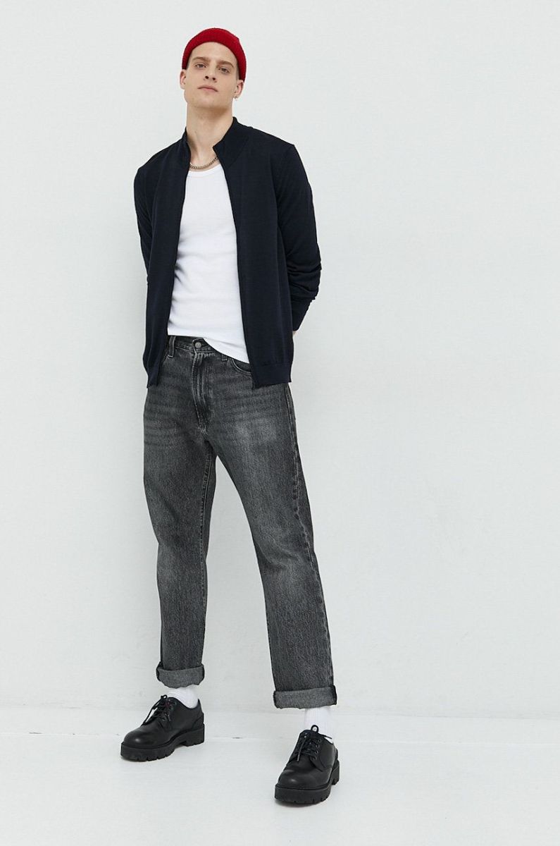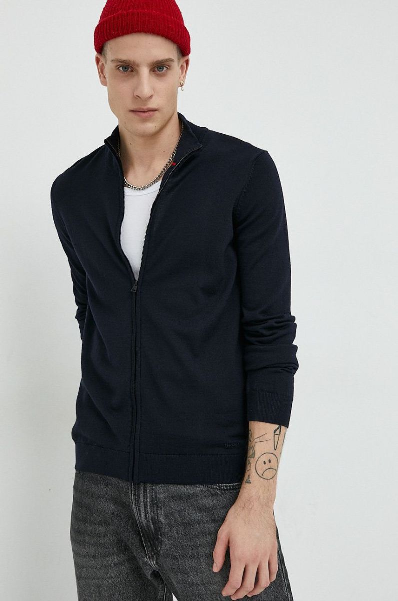 Вовняний кардиган HUGO чоловічий колір синій