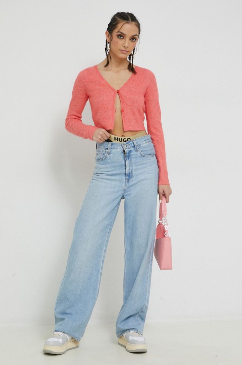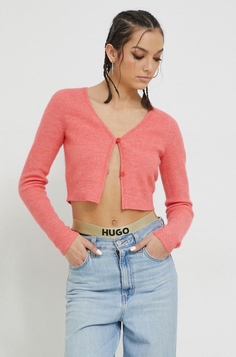 Вовняний кардиган HUGO жіночий колір помаранчевий легкий