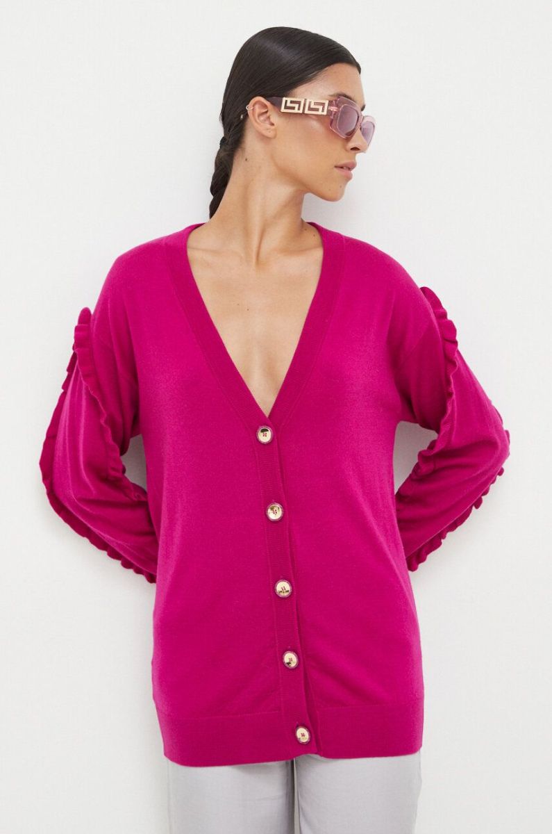 Вовняний кардиган Pinko колір фіолетовий легкий