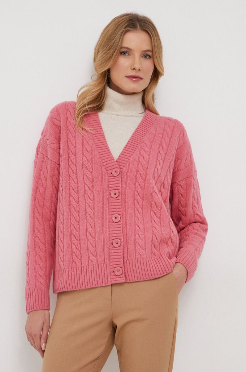 Вовняний кардиган United Colors of Benetton колір рожевий теплий