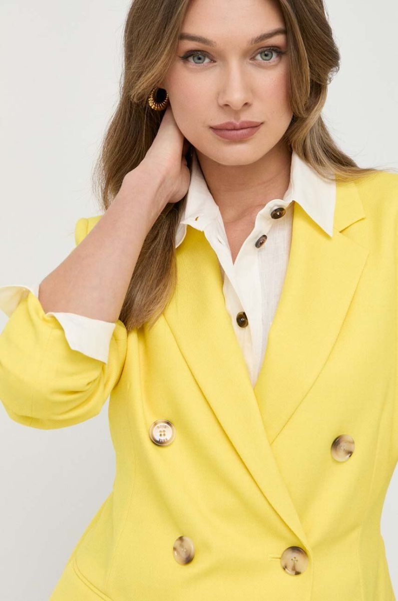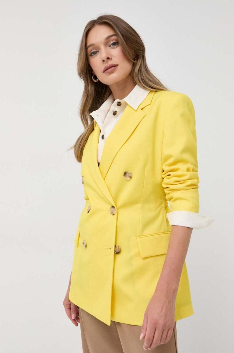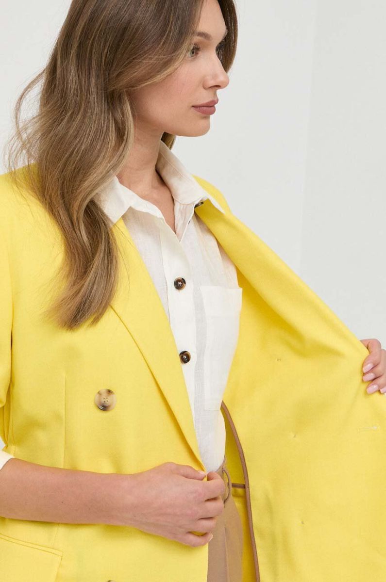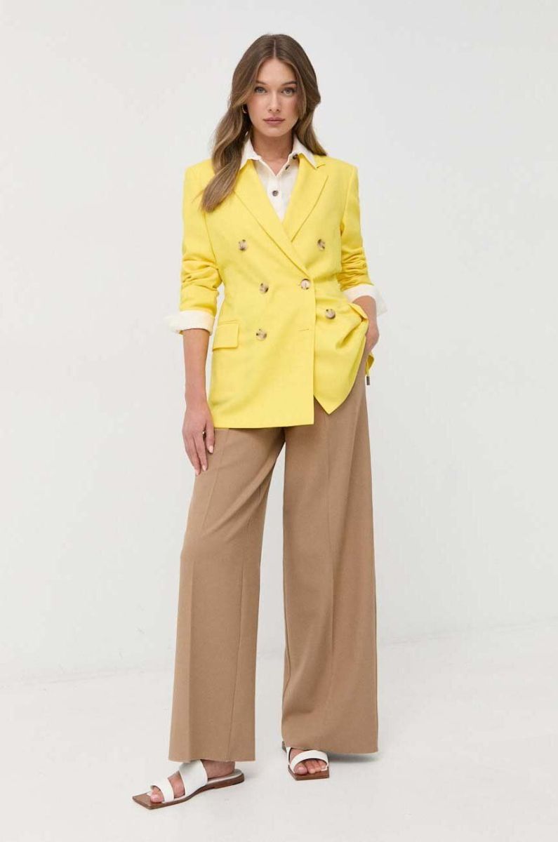 Вовняний піджак BOSS колір жовтий двобортний однотонна