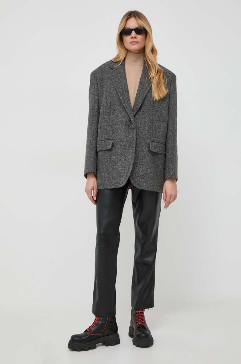 Вовняний піджак Weekend Max Mara колір сірий однобортний меланж