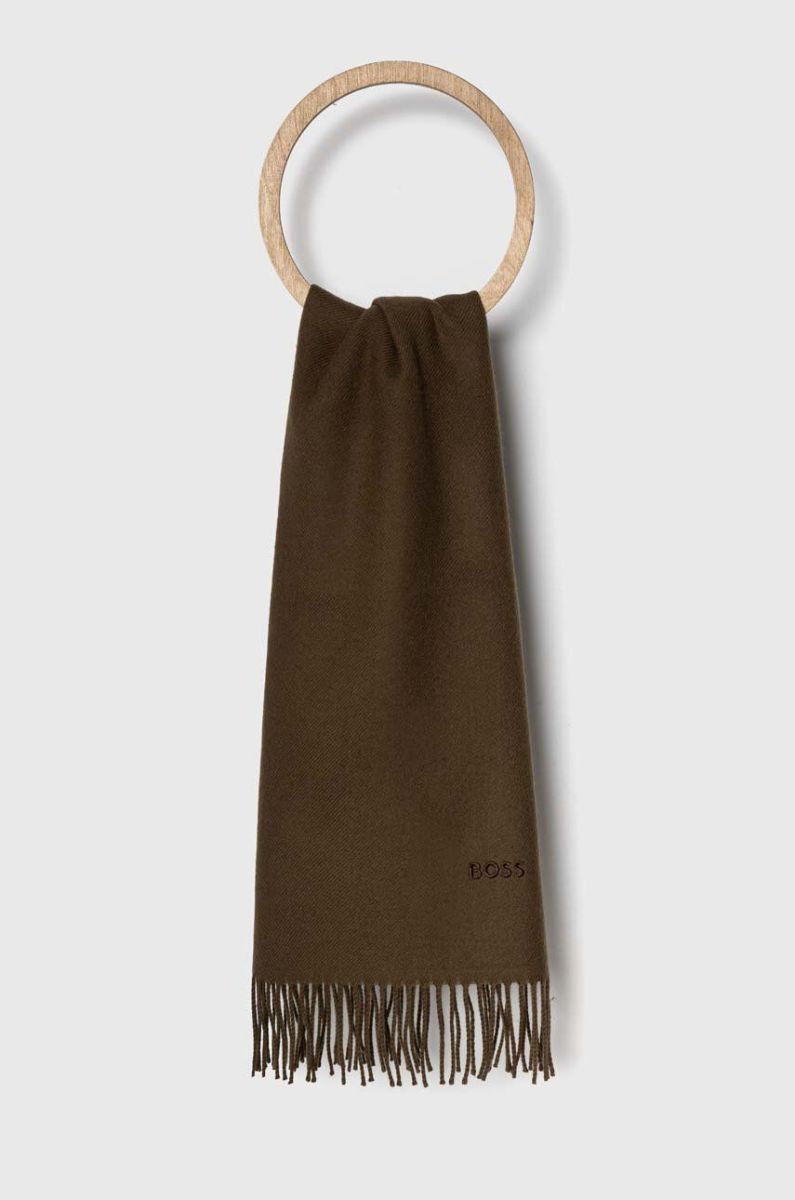 Вовняний шарф BOSS колір зелений однотонний Один розмір