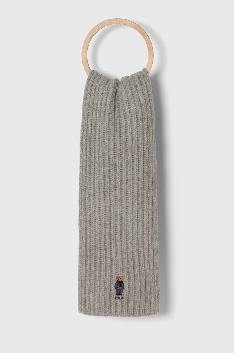 Вовняний шарф Polo Ralph Lauren колір сірий з аплікацією
