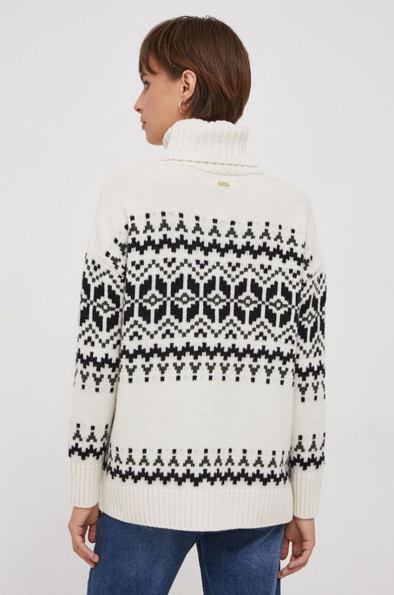 Вовняний светр Barbour жіночий колір бежевий теплий гольф