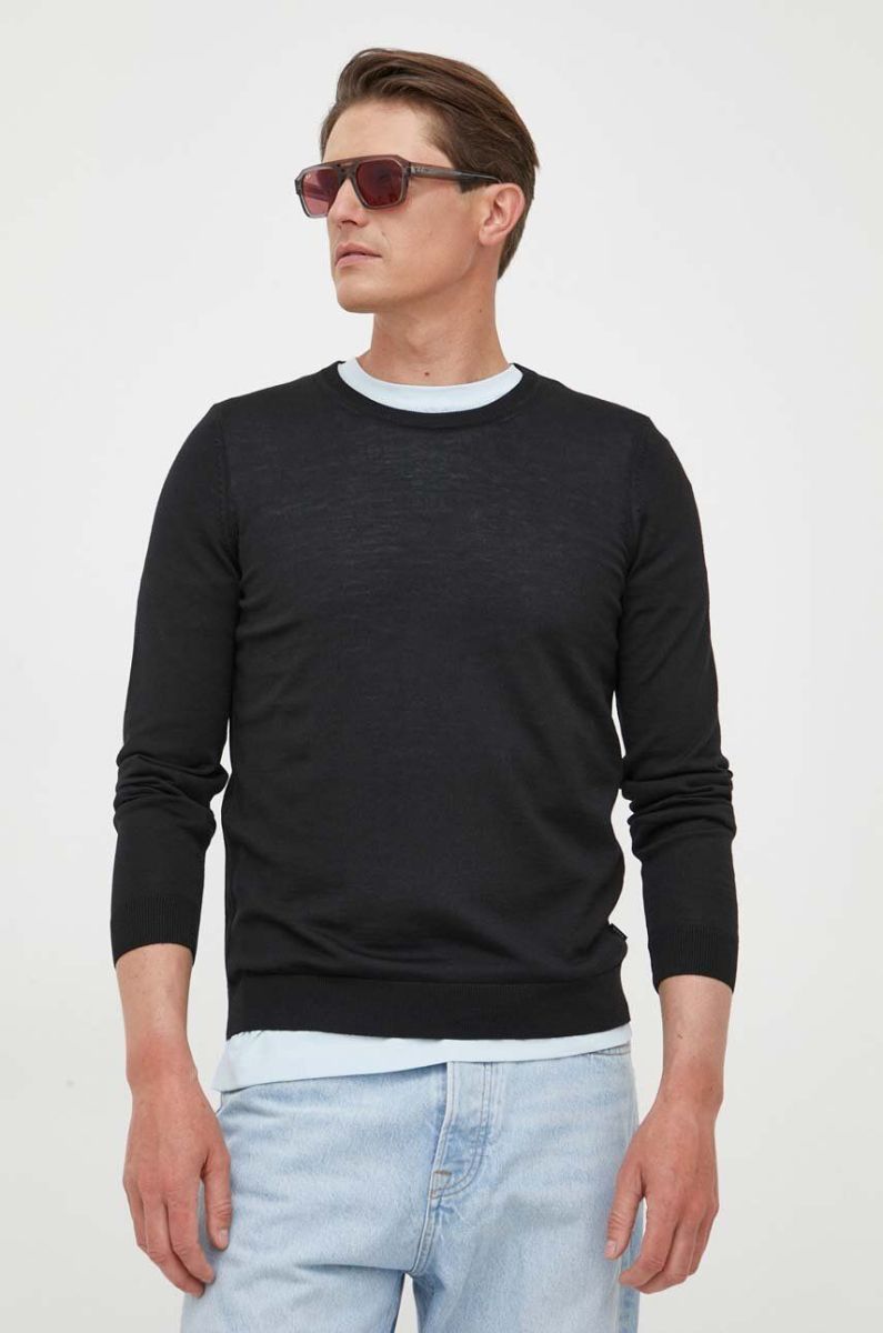 Вовняний светр BOSS чоловічий колір чорний легкий (3253816)