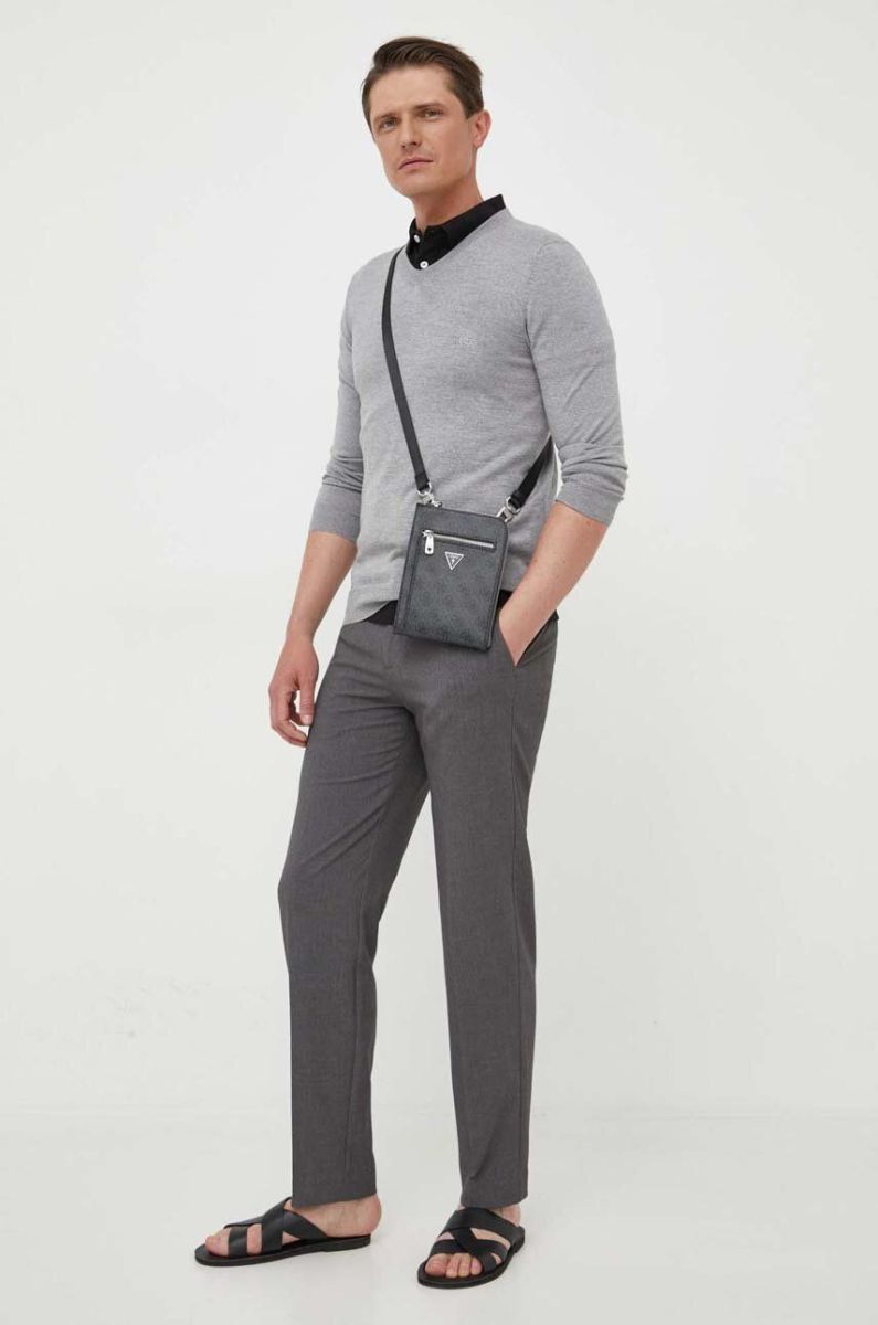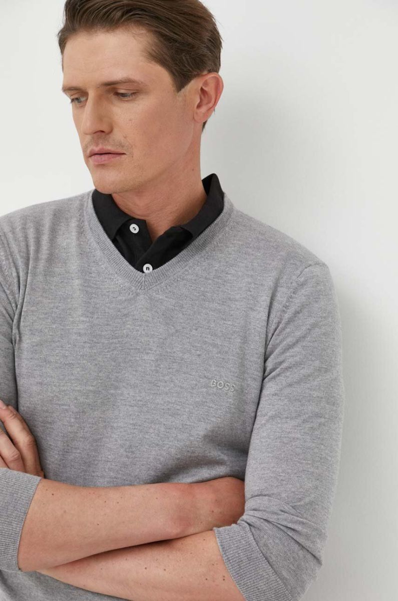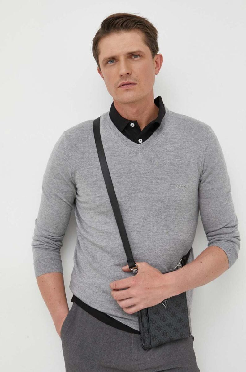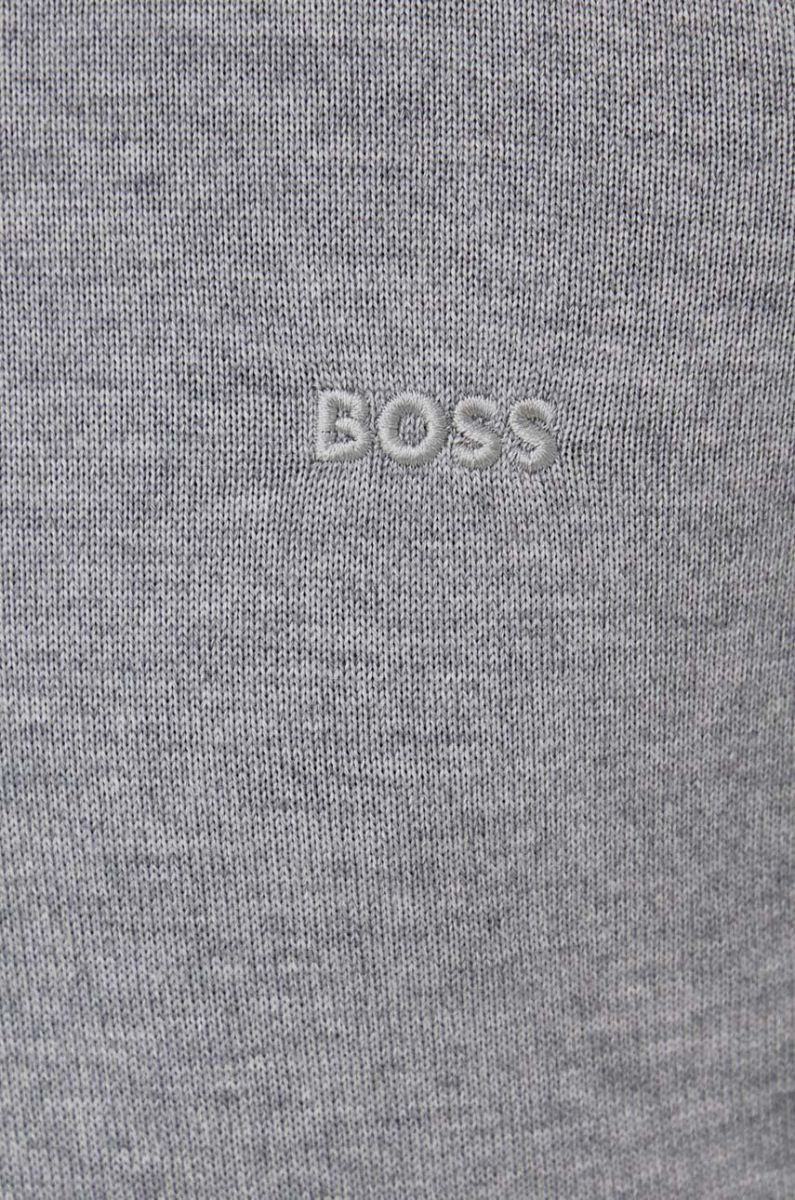 Вовняний светр BOSS чоловічий колір сірий легкий (3274510)
