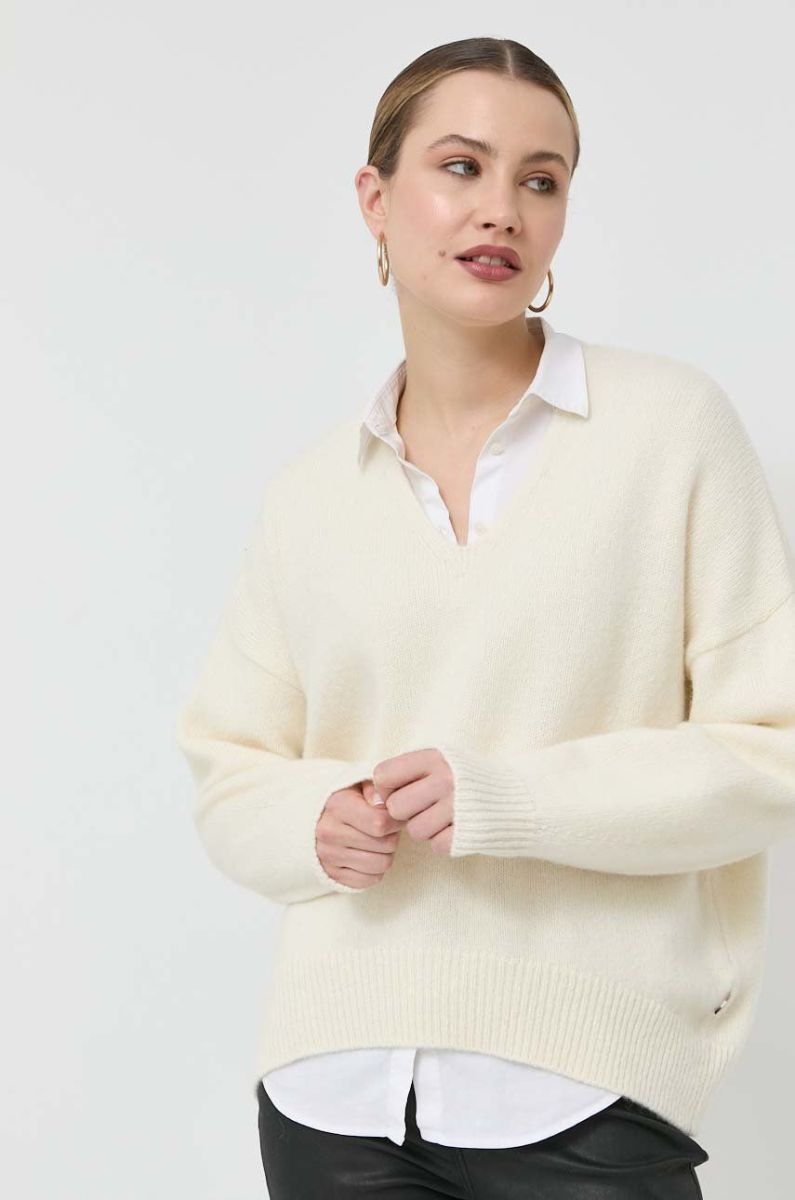 Вовняний светр BOSS жіночий колір білий теплий
