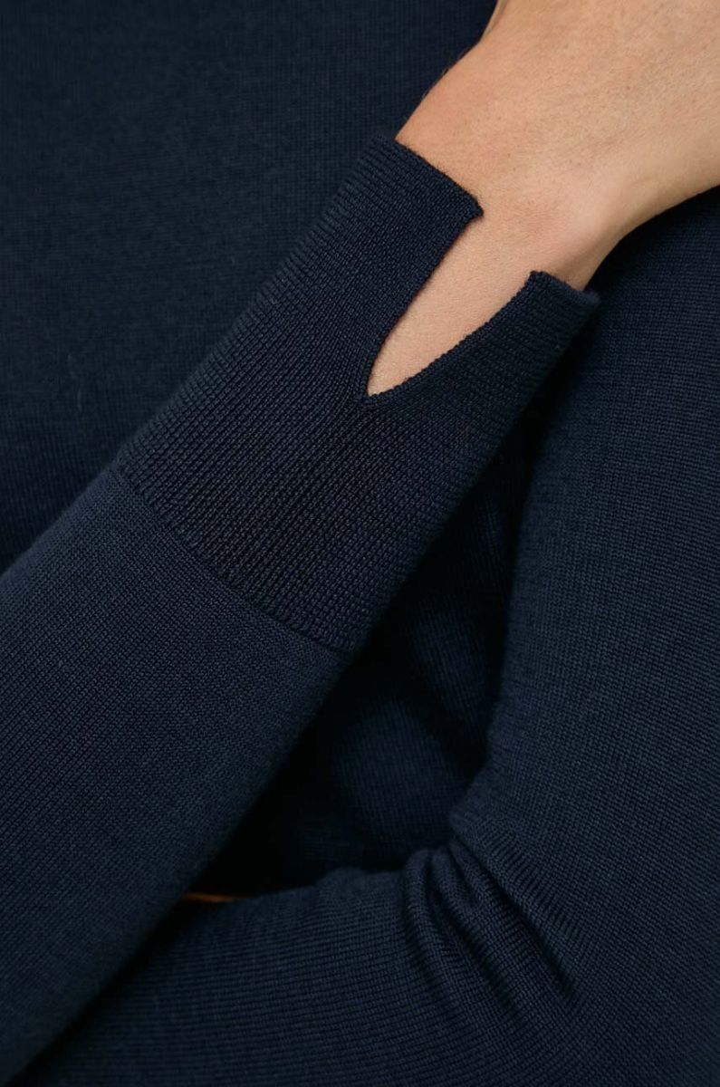 Вовняний светр BOSS жіночий легкий гольф колір темно-синій