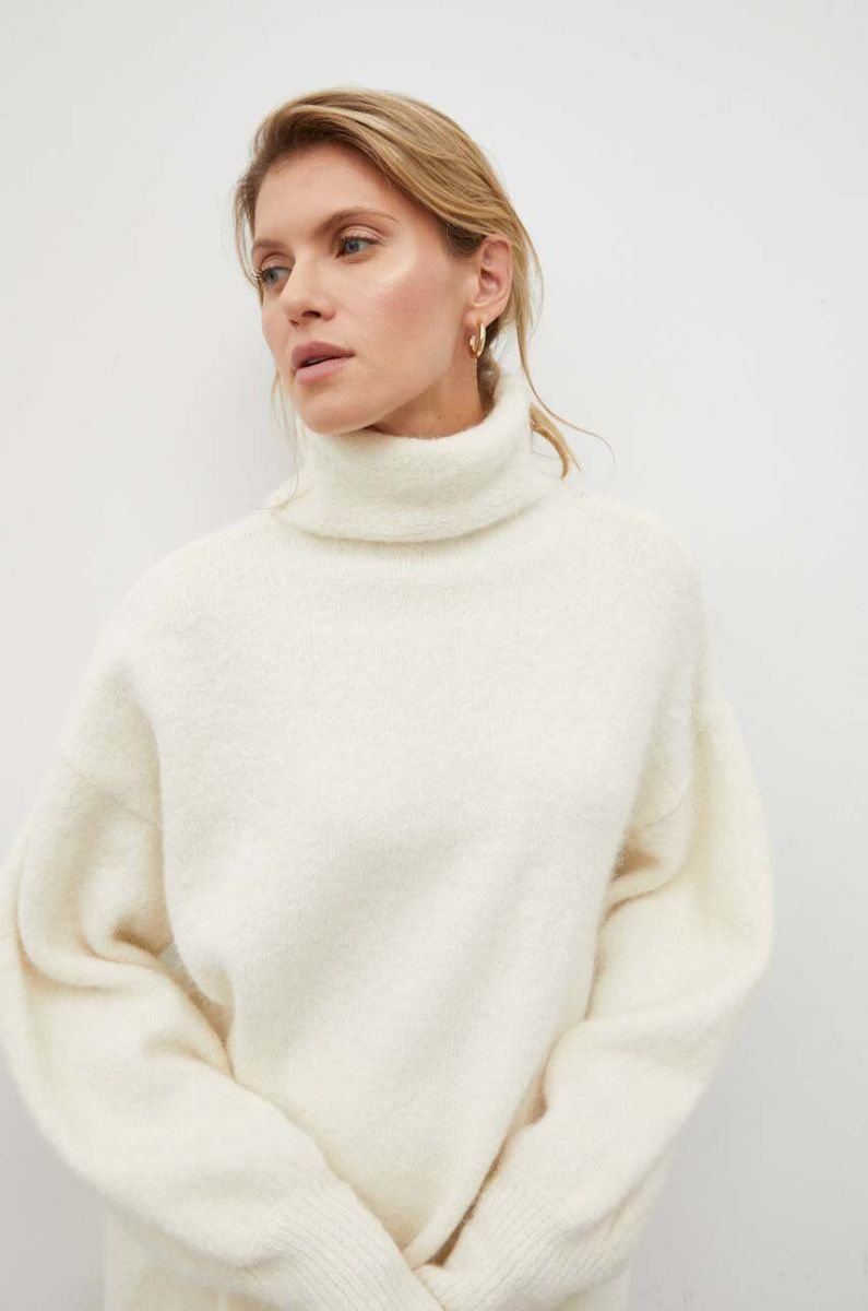Вовняний светр Gestuz жіночий колір бежевий теплий гольф (3618975)
