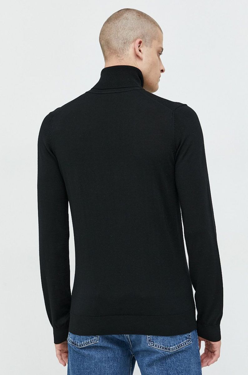 Вовняний светр HUGO чоловічий колір чорний легкий гольф (2766267)