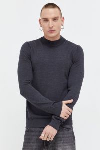 Вовняний светр HUGO чоловічий колір сірий легкий