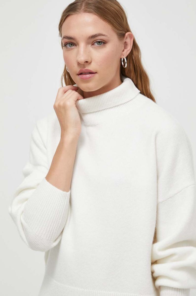 Вовняний светр HUGO жіночий колір бежевий легкий гольф