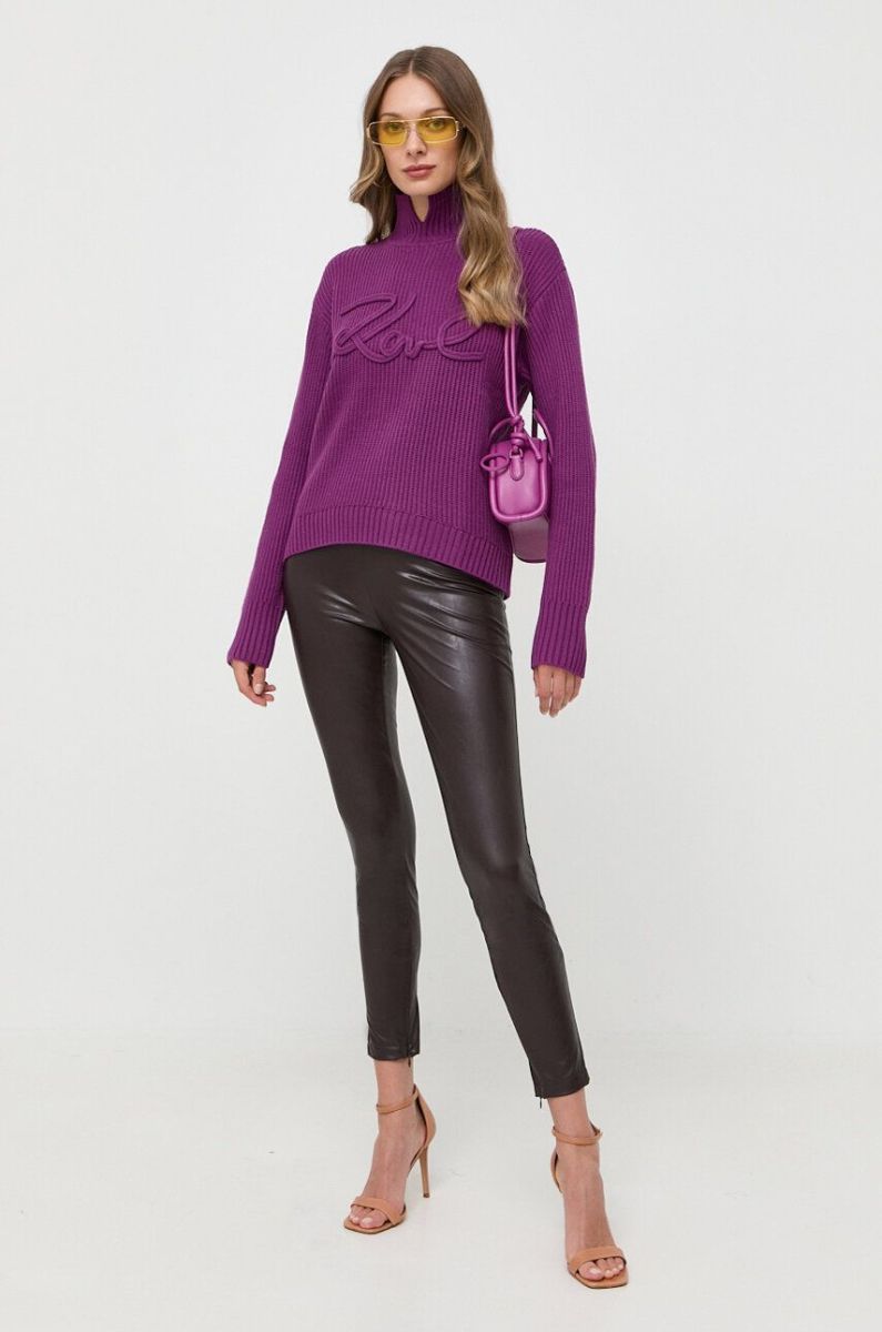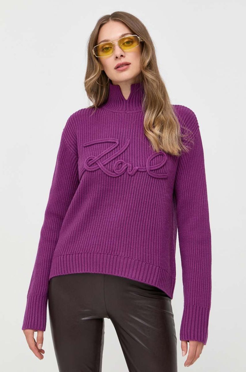 Вовняний светр Karl Lagerfeld жіночий колір фіолетовий гольф