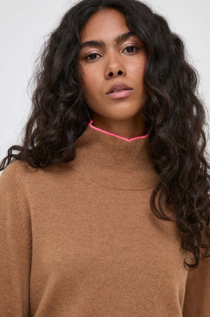 Вовняний светр Pinko жіночий колір коричневий легкий гольф