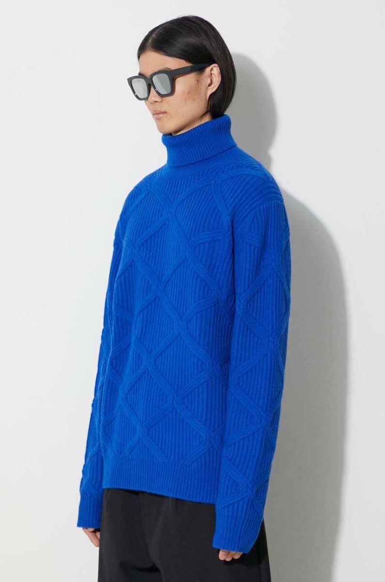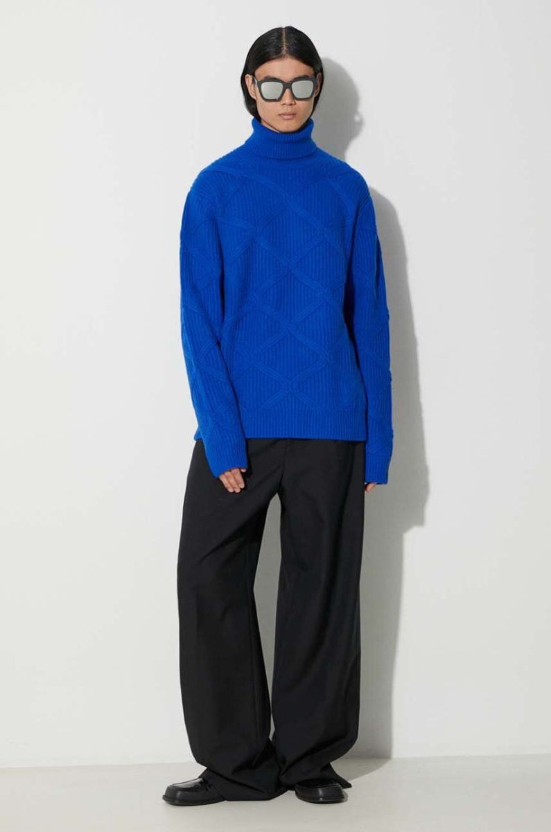 Вовняний светр Samsoe Samsoe жіночий теплий гольф колір блакитний