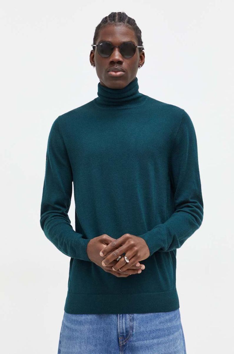 Вовняний светр Superdry чоловічий колір зелений легкий гольф