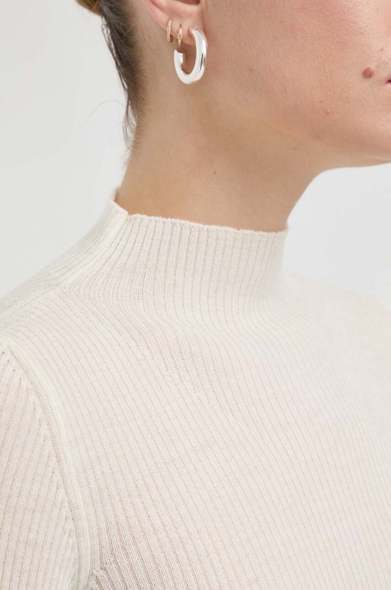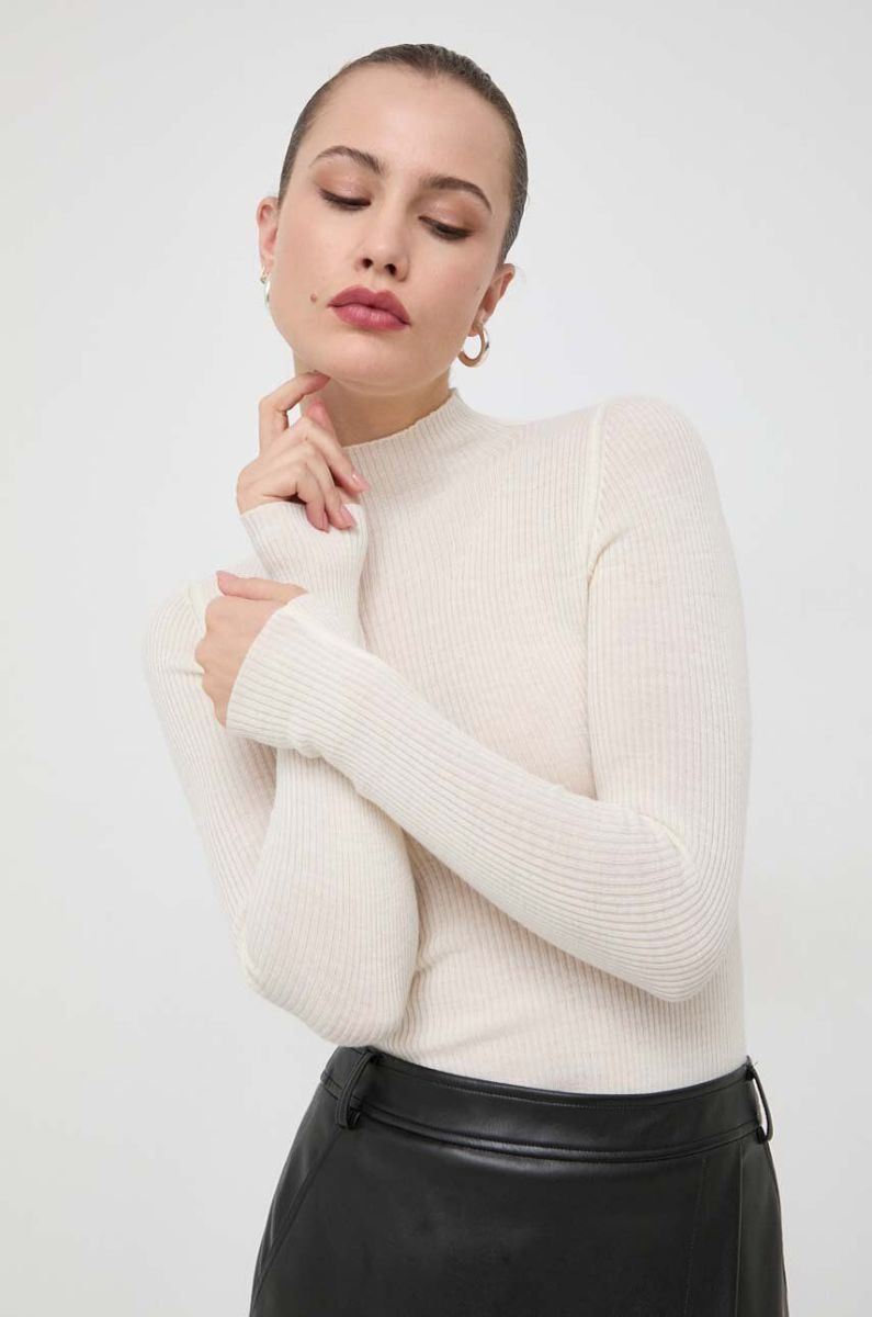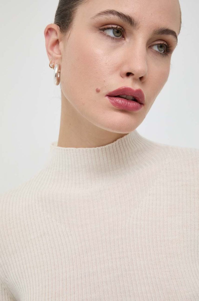 Вовняний светр Twinset жіночий колір бежевий легкий півгольф